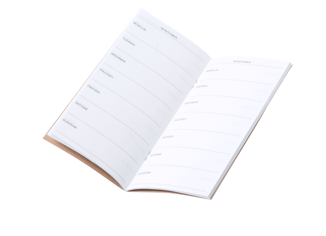 Agenda perpetua con tapas de suave tacto acabadas en resistente cartón reciclado. Diseño semana vista con 26 hojas. 26 Hojas. Semana Vista