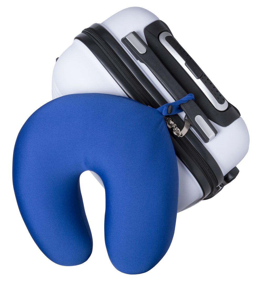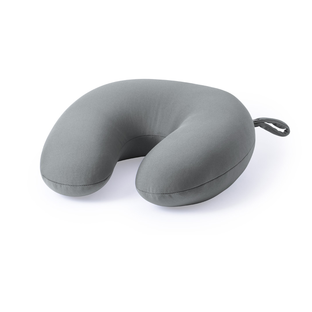 Almohadilla para cuello con cuerpo de suave acabado en poliéster en amplia gama de vivos colores. Con relleno de bolitas y cinta de transporte.