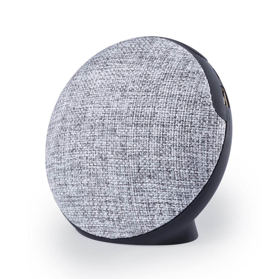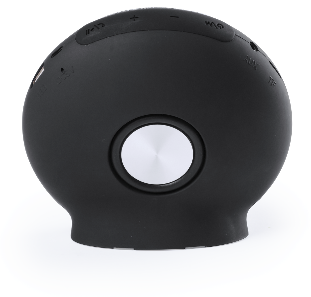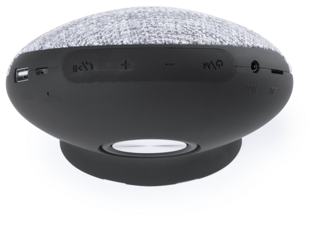 Altavoz de conexión Bluetooth®. En tejido de poliéster de acabado bicolor y con cuerpo en suave acabado goma. Ofrece 3W de potencia, tiene función de manos libres, una ranura para tarjetas mini SD de hasta 32 GB de capacidad y entrada auxiliar de línea me Conexión Bluetooth. Potencia 3W. Recargable USB. Cable Incluido