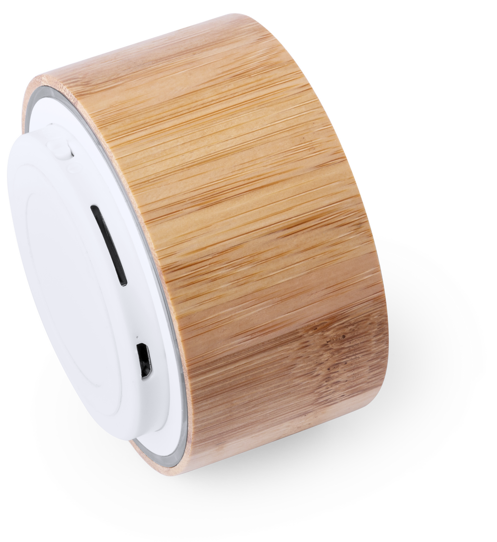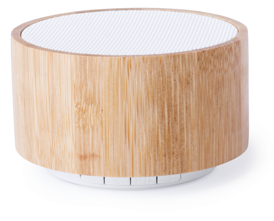Compacto altavoz con cuerpo en bambú y conexión Bluetooth®. Con 3W de potencia, función manos libres, radio FM, una ranura para tarjetas mini SD y base antideslizante. Recargable mediante cable USB -incluido- y presentado en una atractiva caja de diseño. Conexión Bluetooth. Potencia 3W. Recargable USB. Cable Incluido