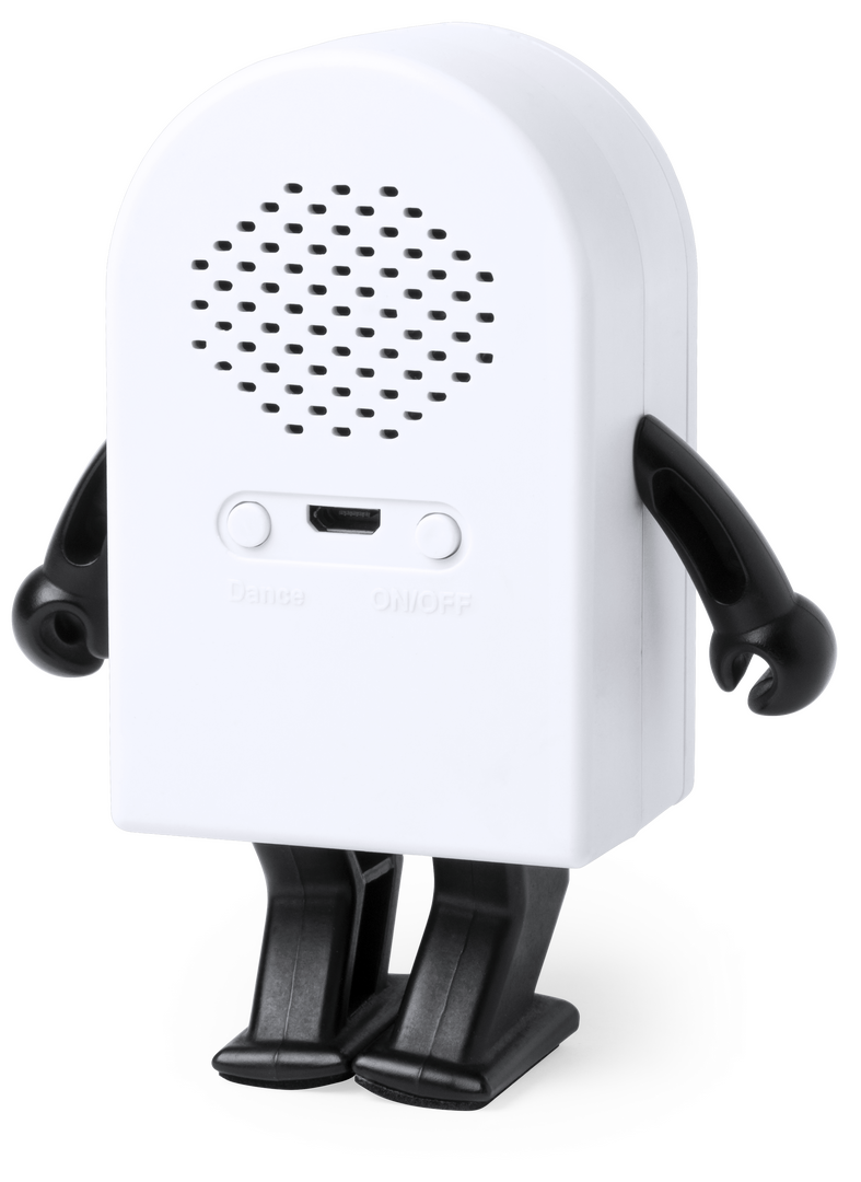 Divertido altavoz bailarín con conexión Bluetooth®. Con amplia superficie de marcaje y 3W de potencia. Recargable mediante cable USB -incluido- y presentado en una atractiva caja de diseño. Conexión Bluetooth. Potencia 3W. Recargable USB. Cable Incluido