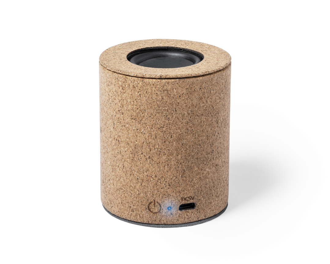 Compacto altavoz de línea nature y conexión Bluetooth® 5.0. Carcasa en corcho natural, para así fomentar la utilización de materias primas naturales y reducir las emisiones contaminantes. Ofrece 3W de potencia, con cable micro USB incluido y base antidesl Conexión Bluetooth. Potencia 3W. Recargable USB. Cable Incluido
