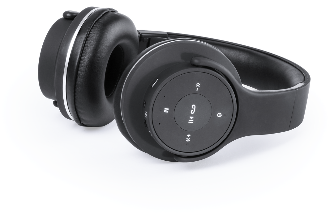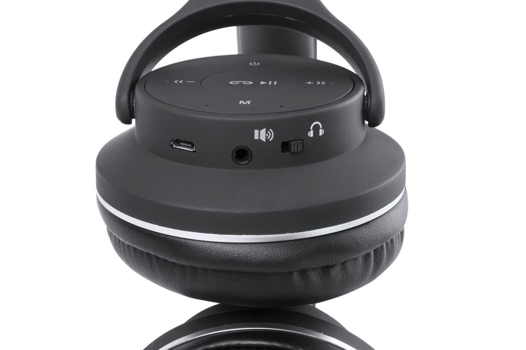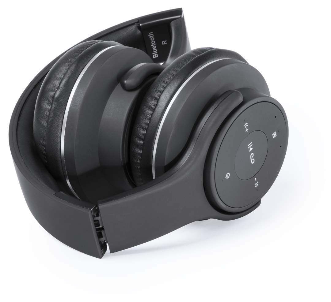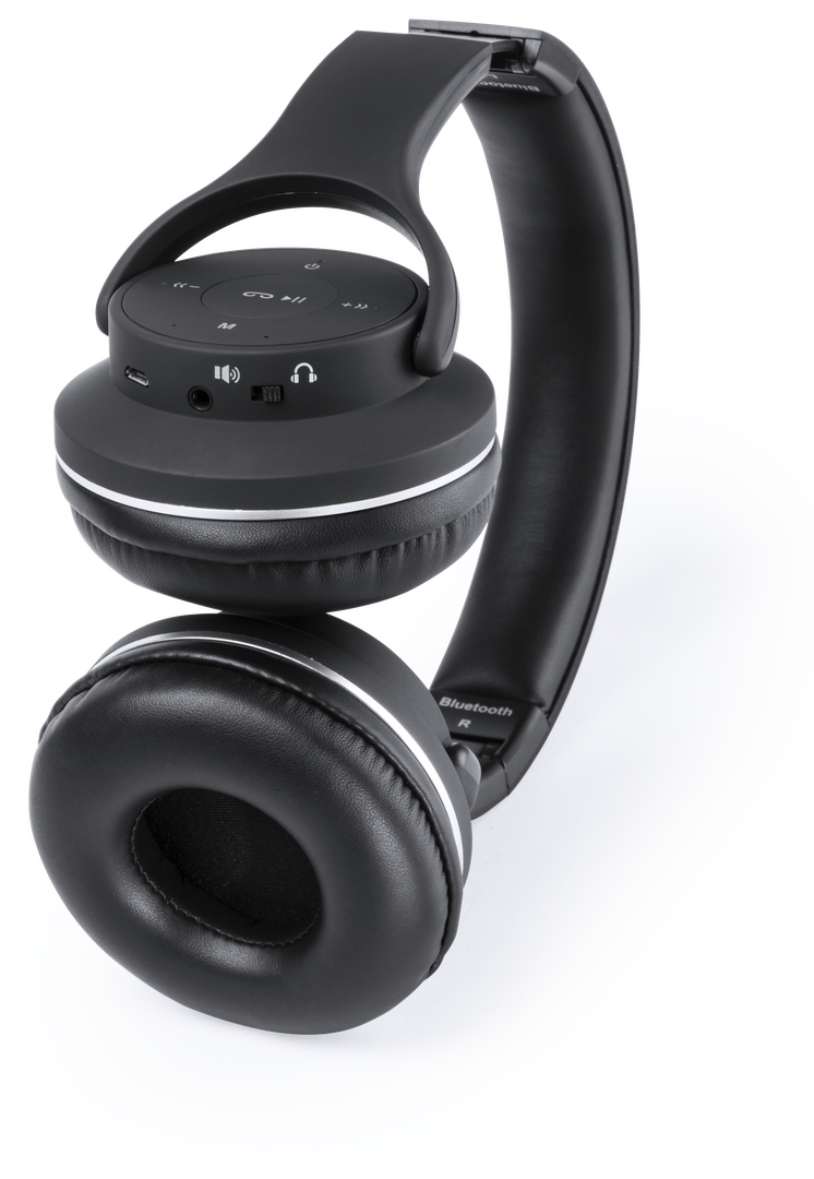 Auriculares plegables de diadema con conexión Bluetooth® y doble función auriculares + altavoces stereo. Sobrio diseño en color negro, con panel de control integrado en el auricular. Función manos libres, radio FM, entrada línea -jack 3.5mm- y ranura para Conexión Bluetooth. Conexión Jack 3,5 mm. Potencia 3Wx2. Recargable USB. Cable Incluido