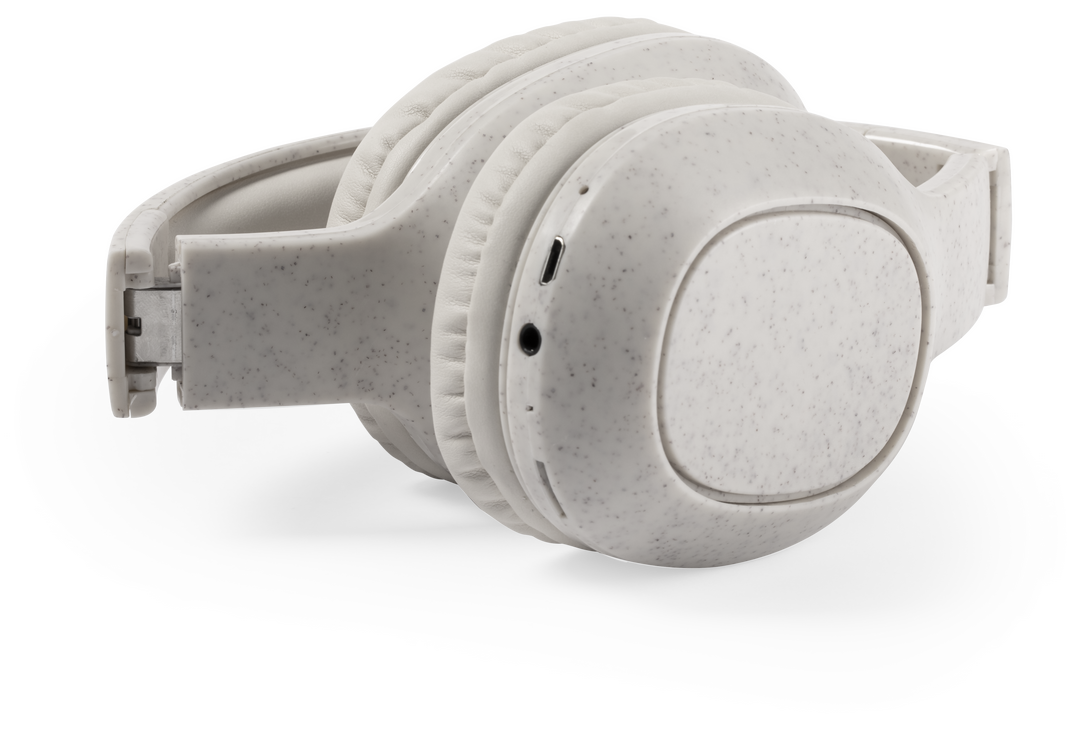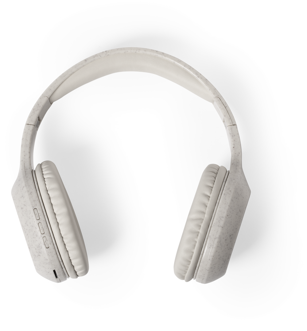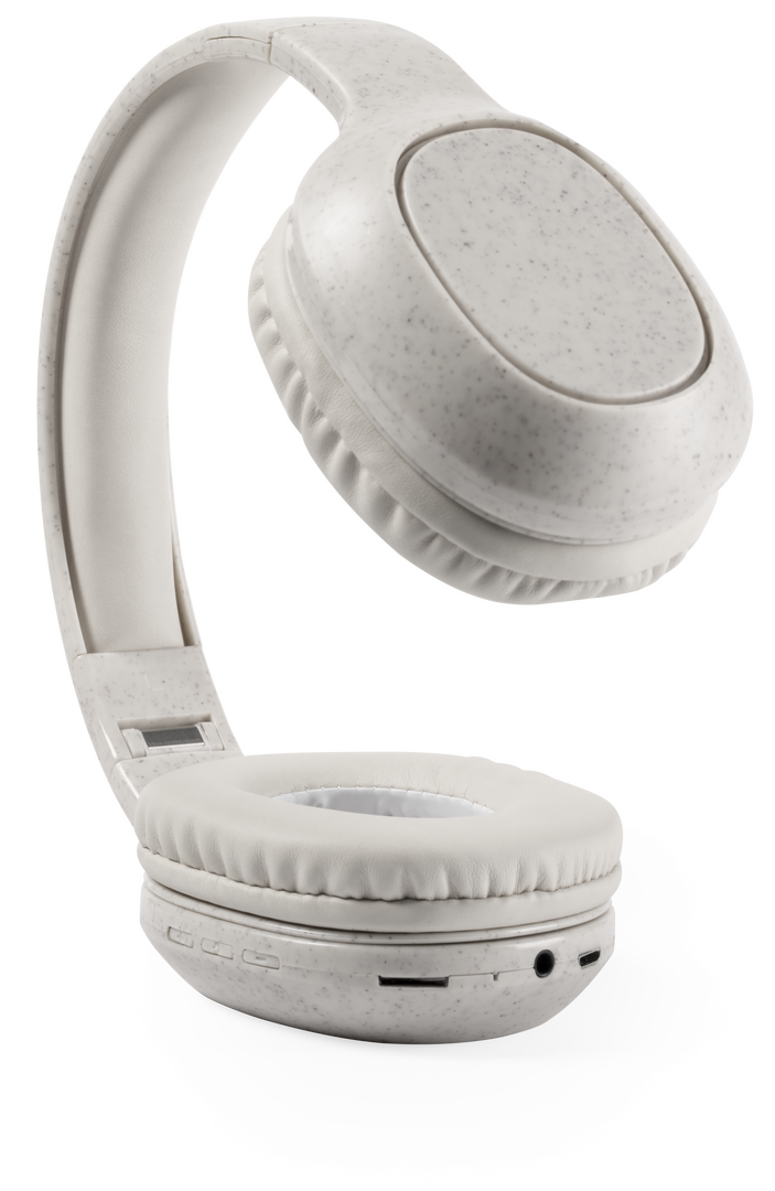 Auriculares de diadema en línea nature con conexión Bluetooth® 5.0. Carcasa en caña de trigo, para así fomentar la utilización de materias primas naturales y reducir las emisiones contaminantes. Con almohadillas ergonómicas en suave polipiel. Panel de con Conexión Bluetooth. Conexión Jack 3,5 mm. Recargable USB. Cable Incluido
