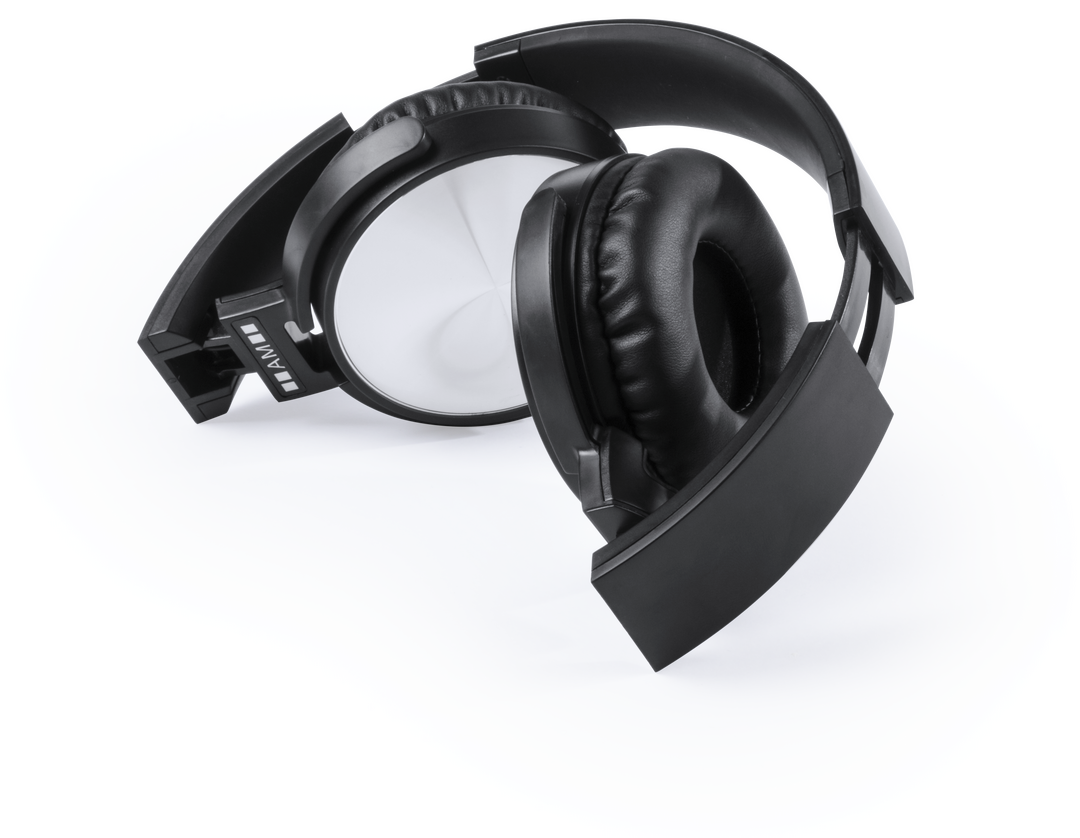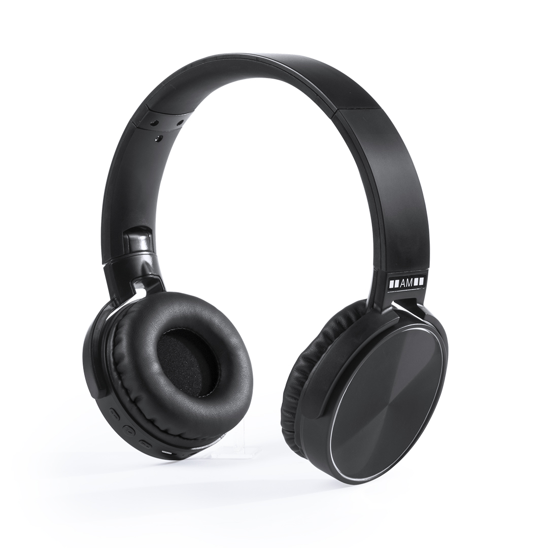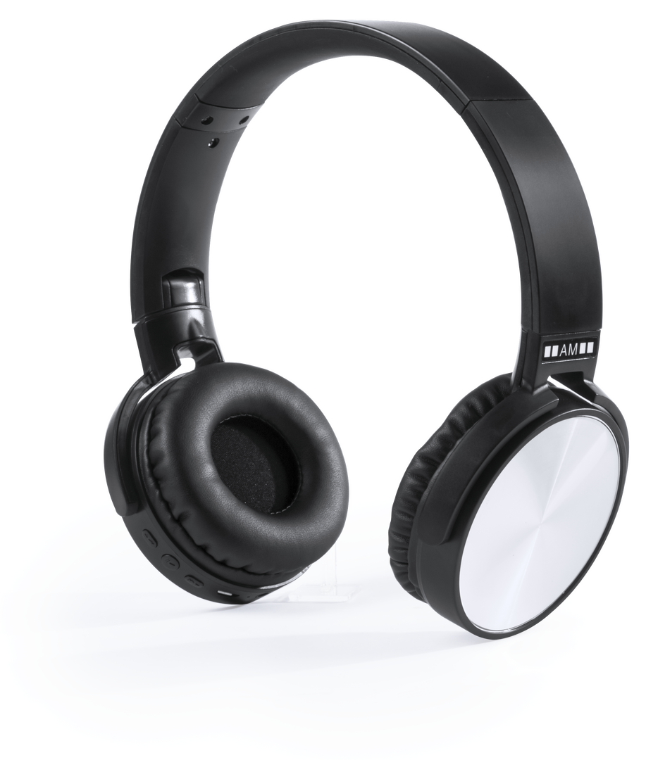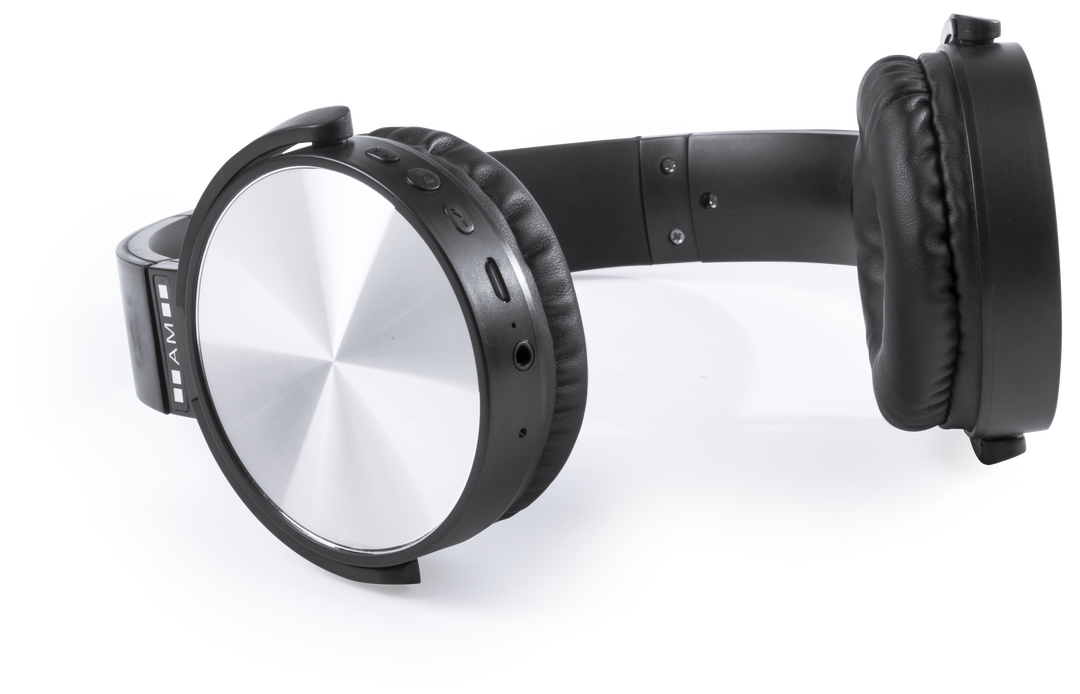 Auriculares de diadema plegables con conexión Bluetooth® de Antonio Miró. De sobrio diseño minimalista en color negro/plateado y con panel de control integrado en auricular. Con conexión Bluetooth® 3.0, radio FM y función manos libres. Almohadillas en pol Conexión Bluetooth. Conexión Jack 3,5 mm. Recargable USB. Cable Incluido