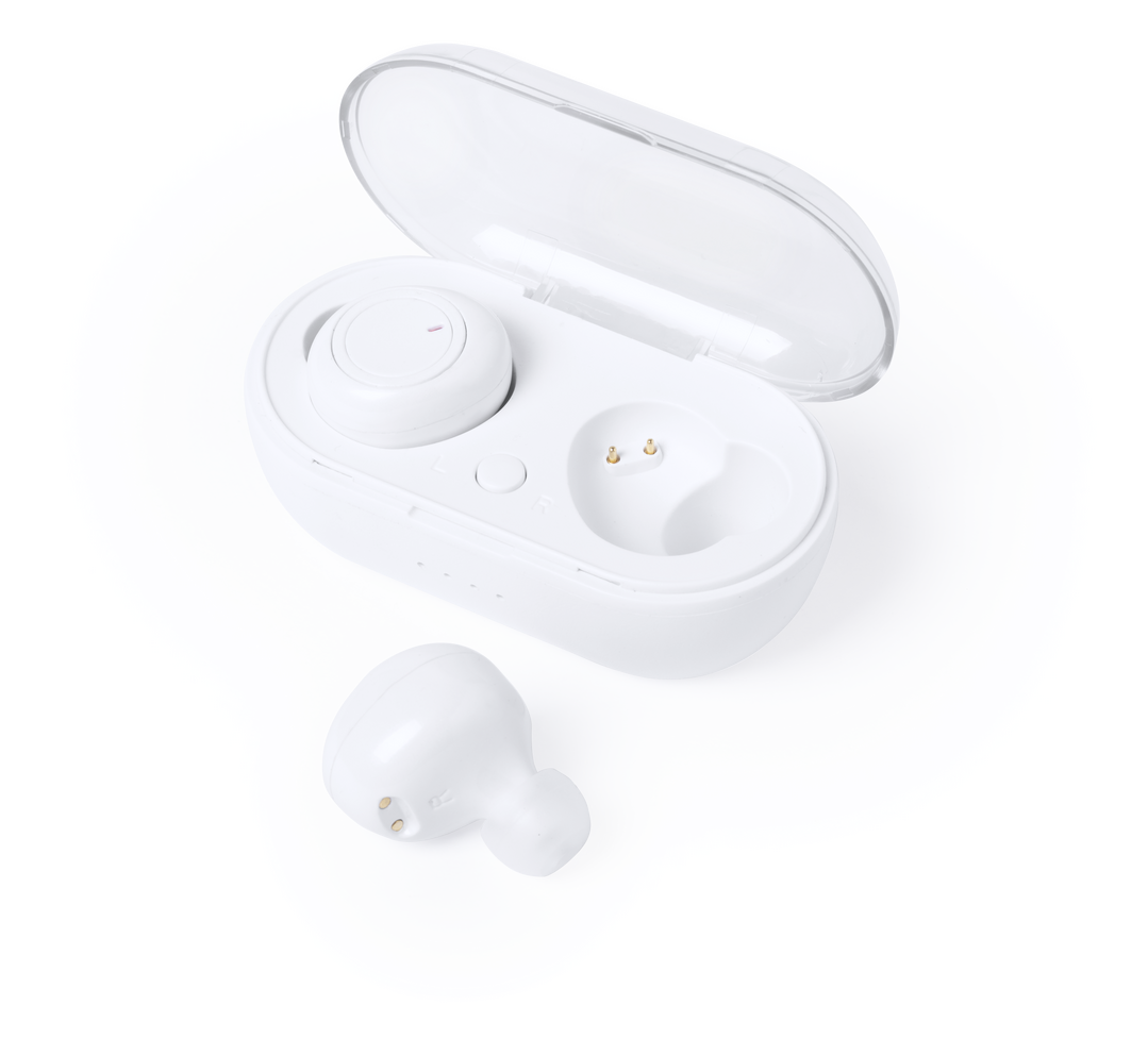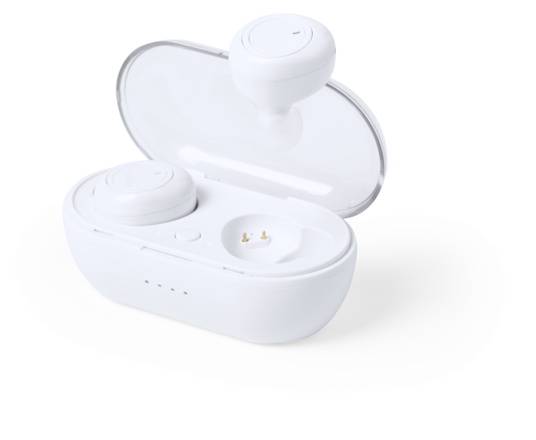 Auriculares intraurales de conexión Bluetooth® 5.0 y diseño minimalista en elegante color blanco. De diseño ergonómico, incluyen panel de control integrado en en auricular, con estuche y base de carga a juego. Función manos libres y recargables, con cable Conexión Bluetooth. Recargable USB. Cable Incluido