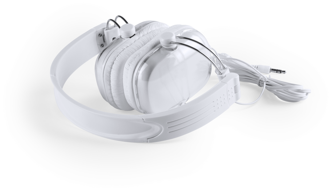 Auriculares de diadema plegables en casual diseño bicolor. Parte exterior de los auriculares con carcasa transparente, suaves y cómodas almohadillas de polipiel, con conexión jack de 3,5mm y presentados en atractiva caja de diseño. Conexión Jack 3,5 mm
