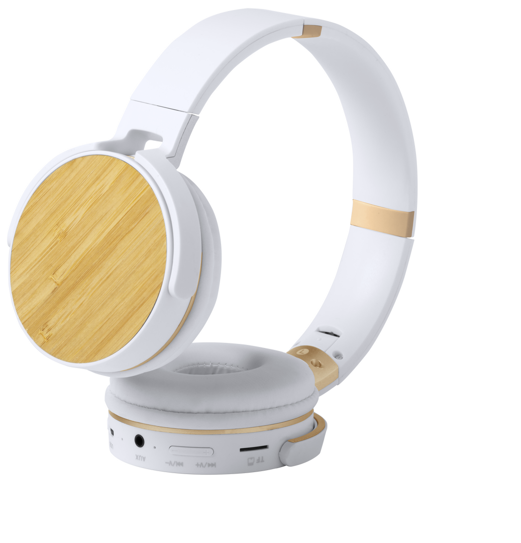 Auriculares de línea nature. Diseño plegable de diadema, con conexión Bluetooth® 5.0 y detalles en bambú procedente de cortes naturales. Con ranura para tarjeta micro SD -tarjeta no incluida-, función manos libres, radio FM, entrada de línea -cable mini j Conexión Bluetooth. Conexión Jack 3,5 mm. Recargable USB. Cable Incluido