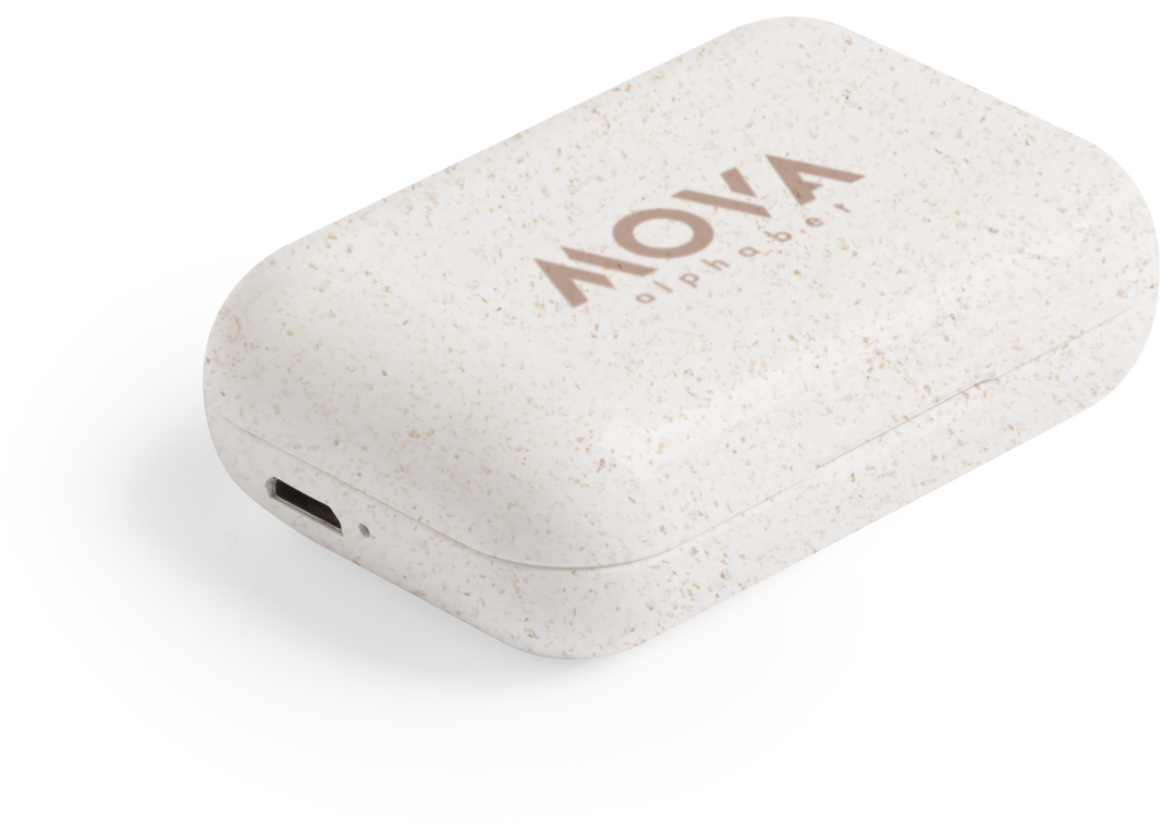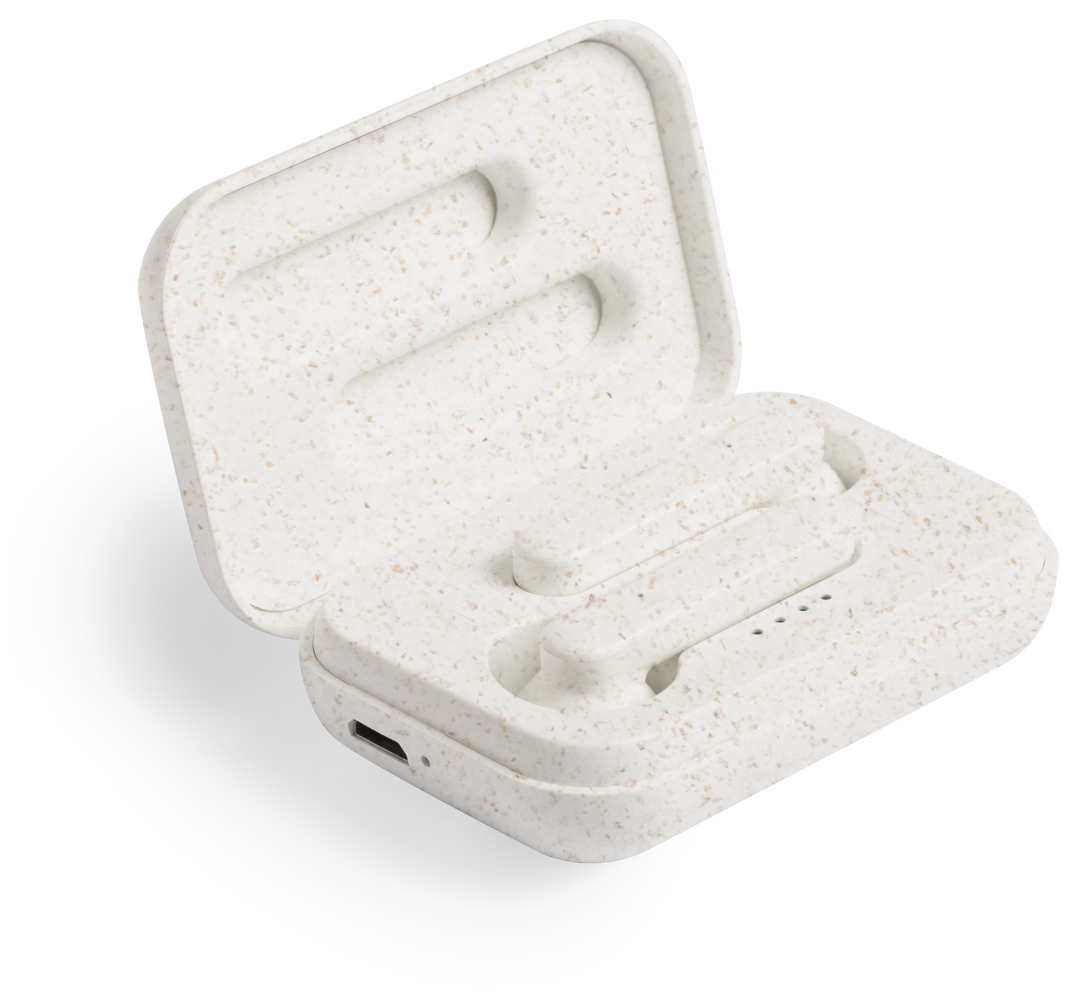 Auriculares intraurales de línea nature. Conexión Bluetooth® 5.0 y carcasa en caña de trigo, para así fomentar la utilización de materias primas naturales y reducir las emisiones contaminantes. De diseño ergonómico, incluyen botón de control táctil integr Conexión Bluetooth. Recargable USB. Cable Incluido