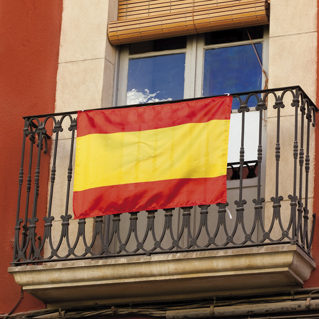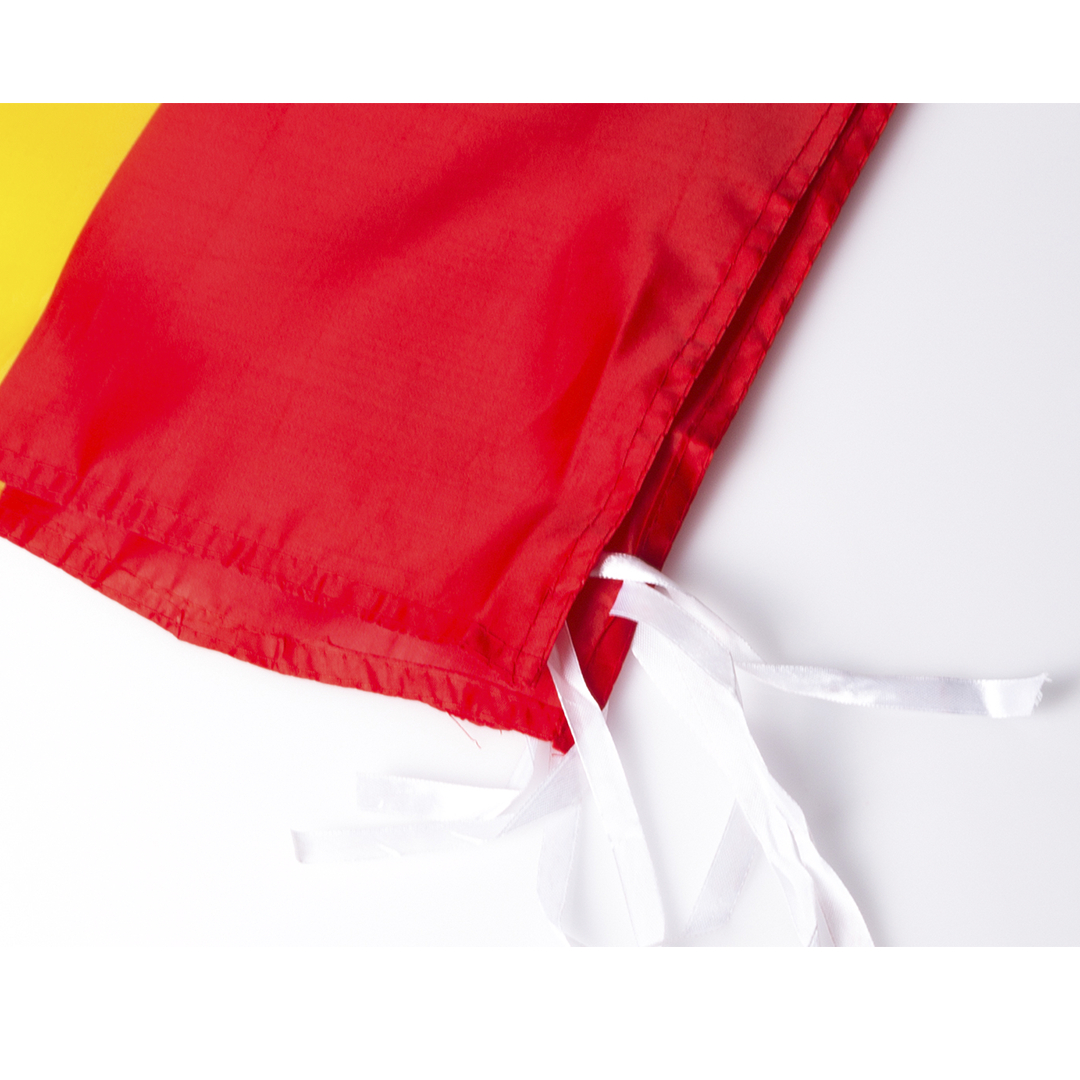 Bandera de España en suave y resistente poliéster con cintas de ajuste.