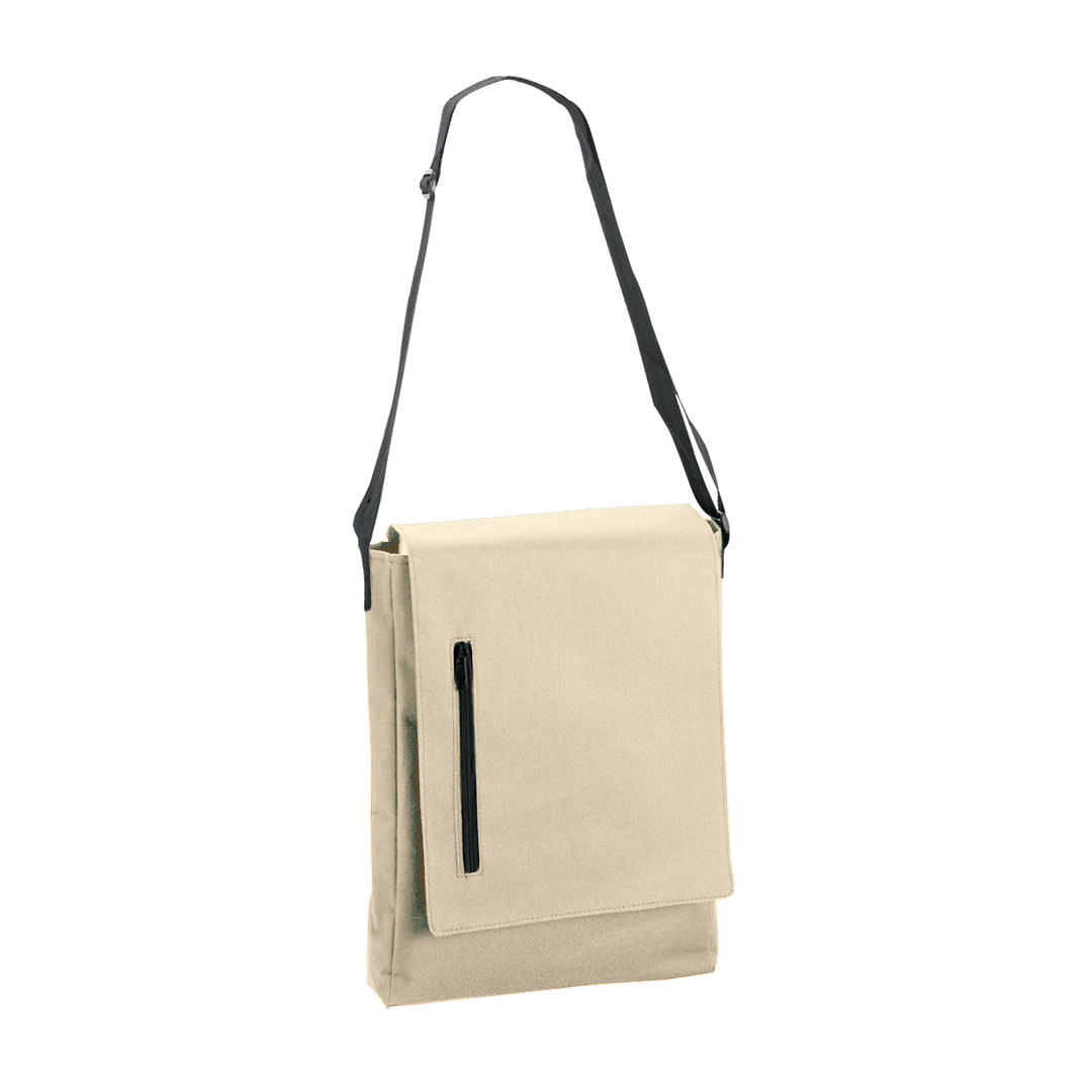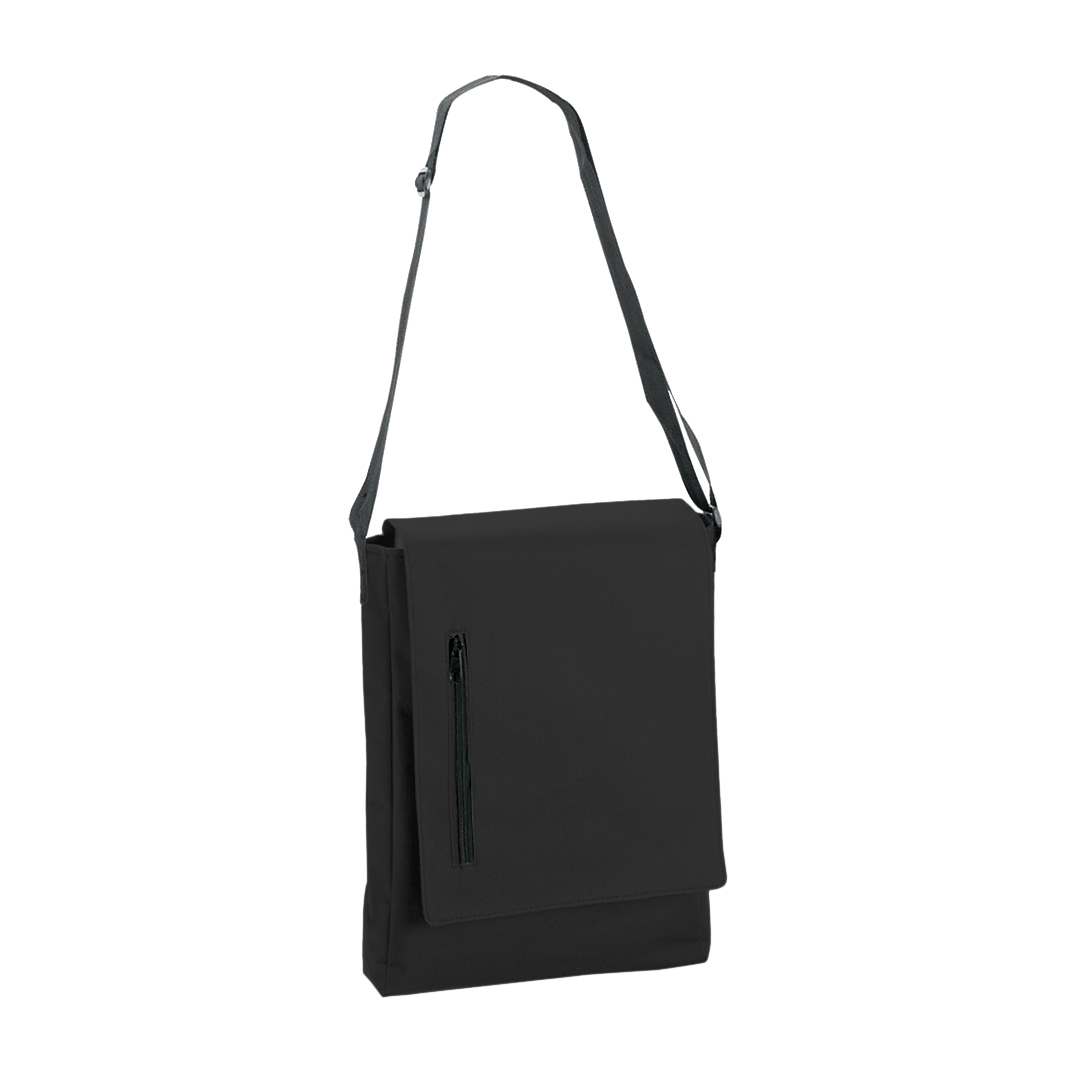 Bandolera de diseño urbano en resistente poliéster 600D con cierre de solapa de velcro y bolsillo exterior con cremallera. Cinta bandolera ajustable.