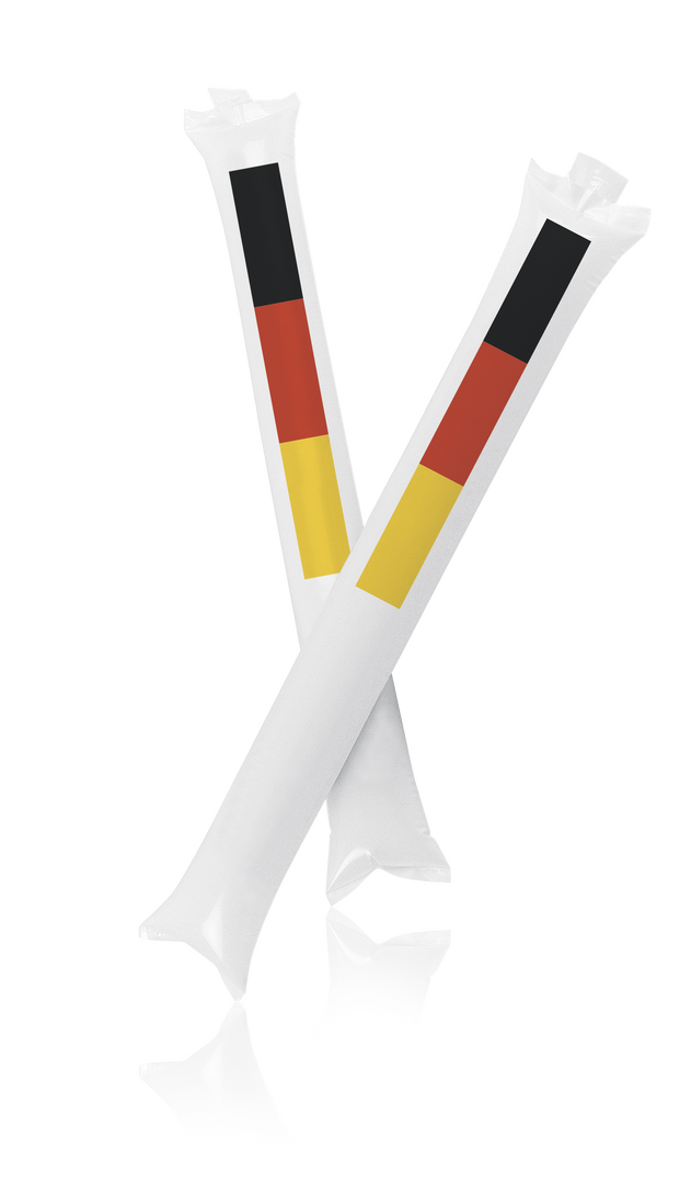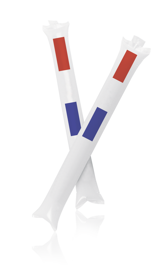 Par de bastom sticks/aplaudidores en resistente y ruidoso material LDPE de vivos colores. Reutilizables y con válvula de inflado incluida. Reutilizable. Válvula Inflado Incluida