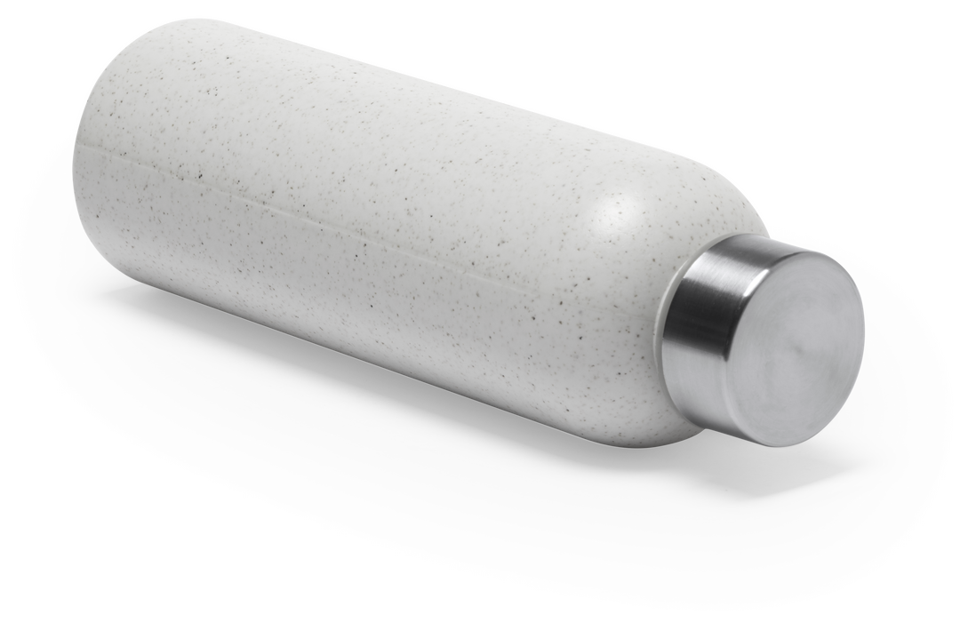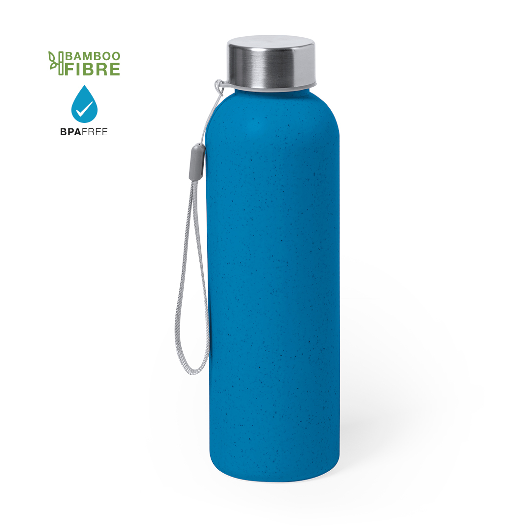 Bidón de línea nature en combinación de materiales fibra de bambú y LDPE. 600 ml de capacidad, con tapón en acero inox a rosca -libre de BPA – y cómoda cinta de transporte. Disponible en variada gama de colores nature. 600 ml