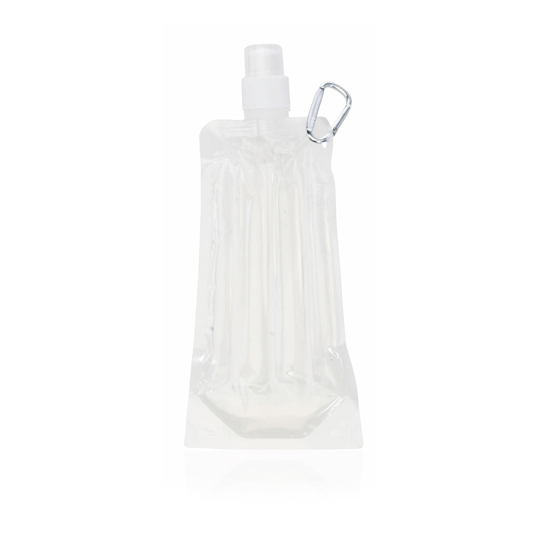 Bidón enfriador de 400ml de capacidad con cuerpo acabado en PET transparente y líquido refrigerante en vivos colores. Con tapón de seguridad a rosca y mosquetón metálico de transporte. 400 ml