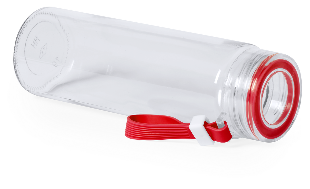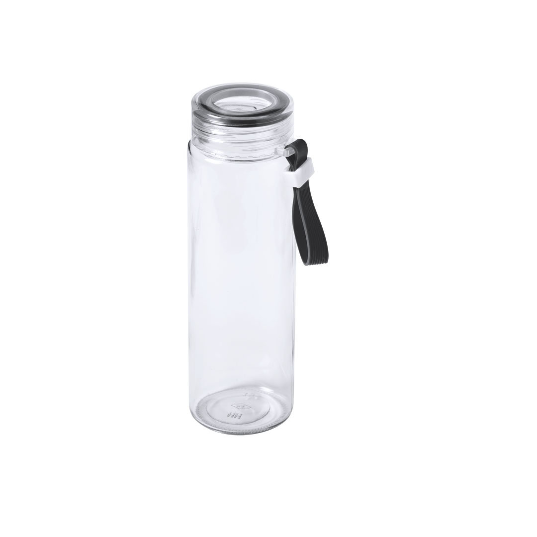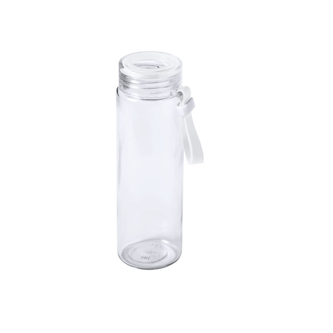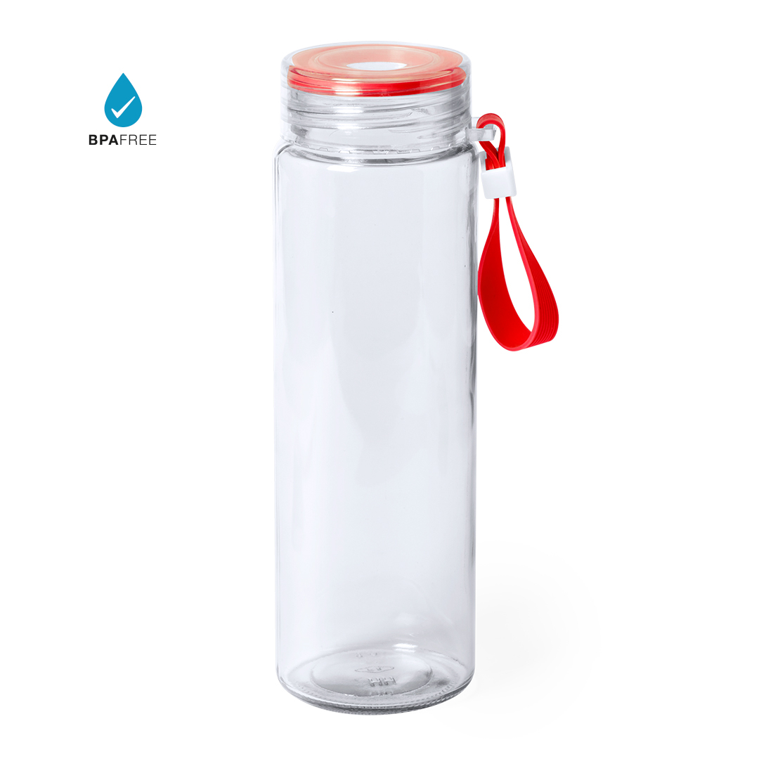 Bidón de 420 ml de capacidad en cristal. Con cuerpo transparente y detalles en desenfados colores. Tapón a rosca libre de BPA y asa de transporte ajustable a juego. Presentado en atractiva caja de diseño. 420 ml. Presentación Individual