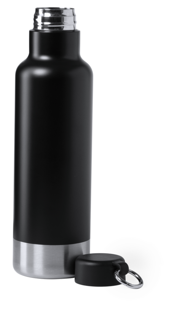 Bidón en alta calidad y de gran capacidad -750 ml-. En acero inox, con tapón a juego y anilla de transporte. Base en elegante acabado inox y disponible en elegantes colores blanco y negro. Presentado en atractiva caja de diseño 750 ml. Presentación Individual