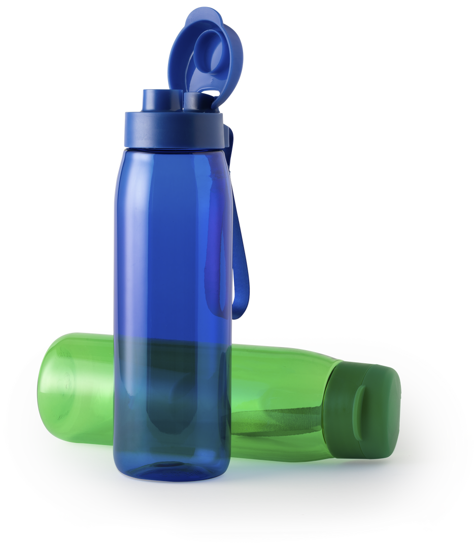 Bidón en alta calidad y de gran capacidad -820 ml-, con cuerpo acabado en material tritán de resistencia al calor (70ºC) y libre de BPA. Acabado en colores transparentes, con tapón dosificador de seguridad a juego y cinta de transporte. Disponible en vari 820 ml