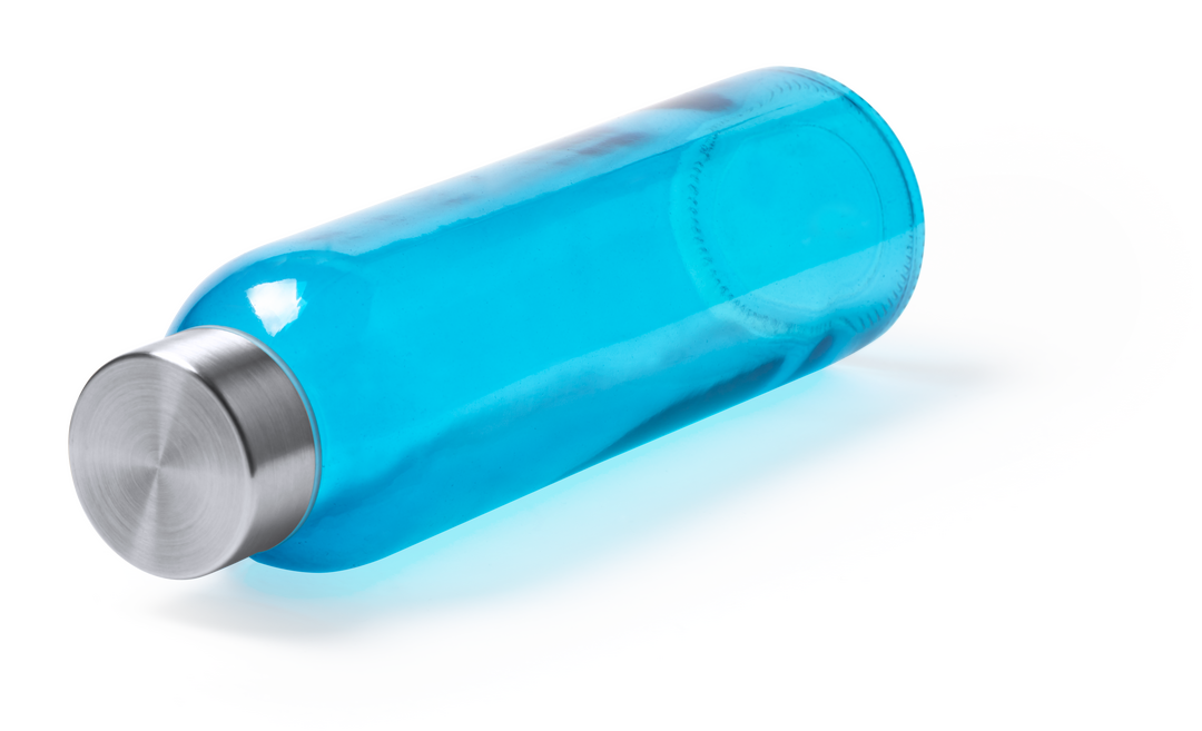 Bidón de cristal en alta calidad, de 500ml de capacidad, con cuerpo de acabado transparente en material libre de BPA y tapón a rosca en acero inox. Disponible en variada gama de colores. Presentado en atractiva caja de diseño. 500 ml. Presentación Individual