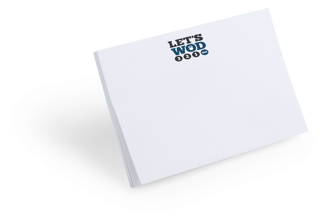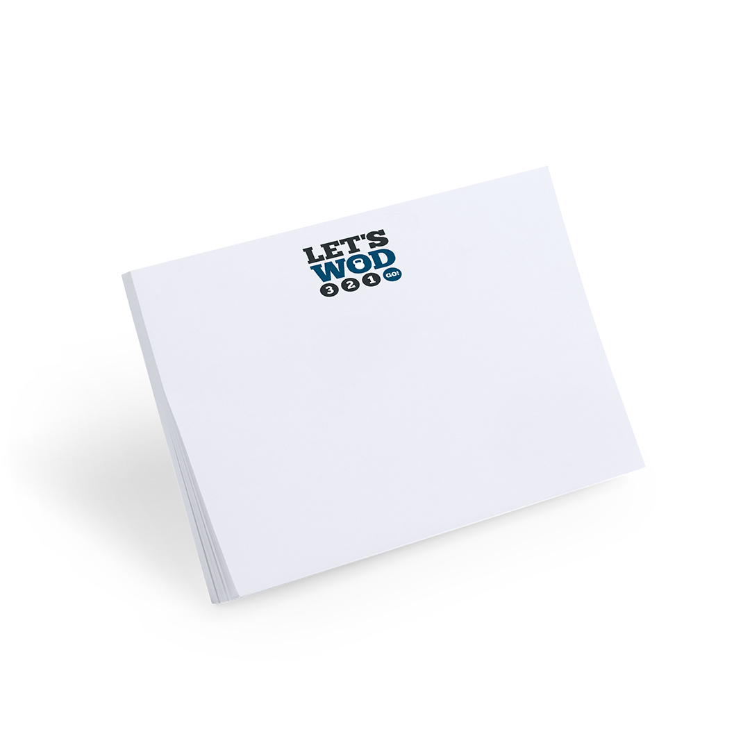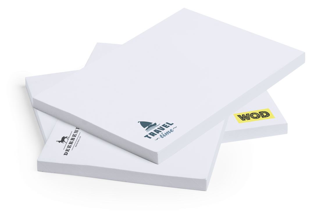 Bloc adhesivo de 50 hojas lisas especialmente diseñado para personalización en hojas. Pedidos a partir de 500 unidades. 50 Hojas