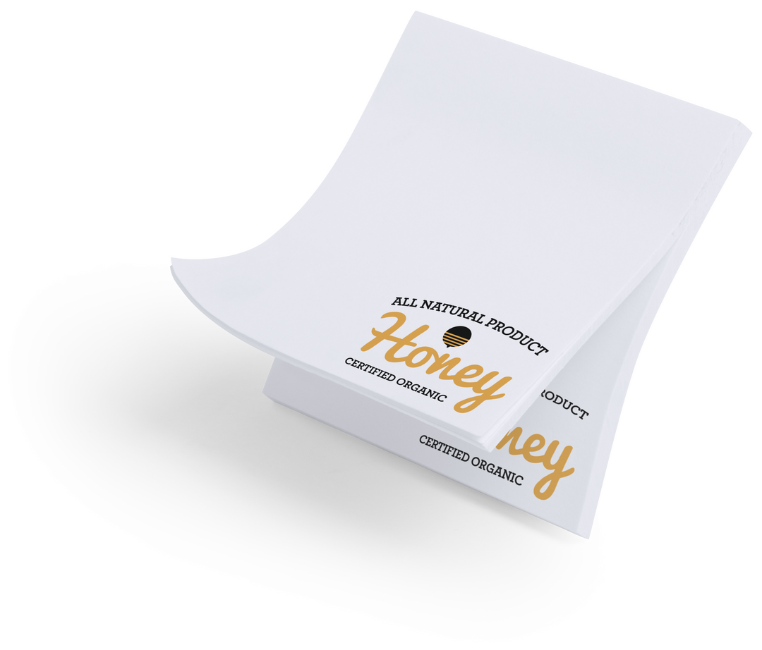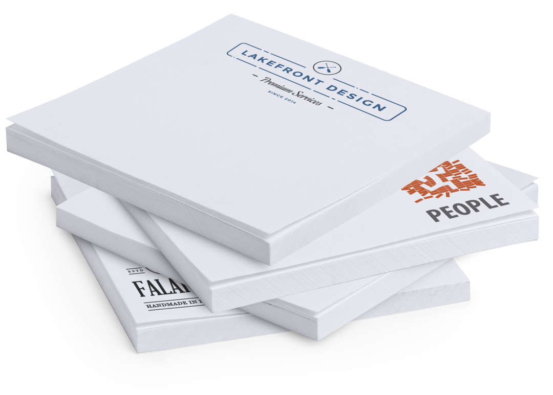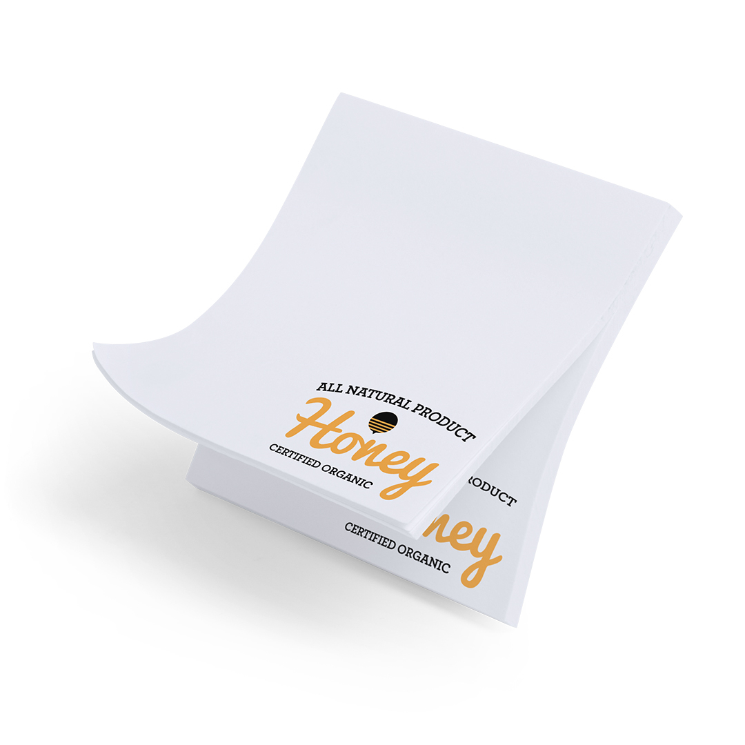 Bloc adhesivo de 50 hojas lisas especialmente diseñado para personalización en hojas. Pedidos a partir de 500 unidades. 50 Hojas