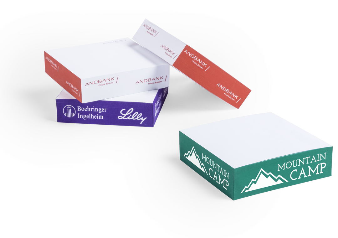 Bloc encolado de 250 hojas lisas especialmente diseñado para personalización en laterales. Pedidos a partir de 250 unidades. 250 Hojas