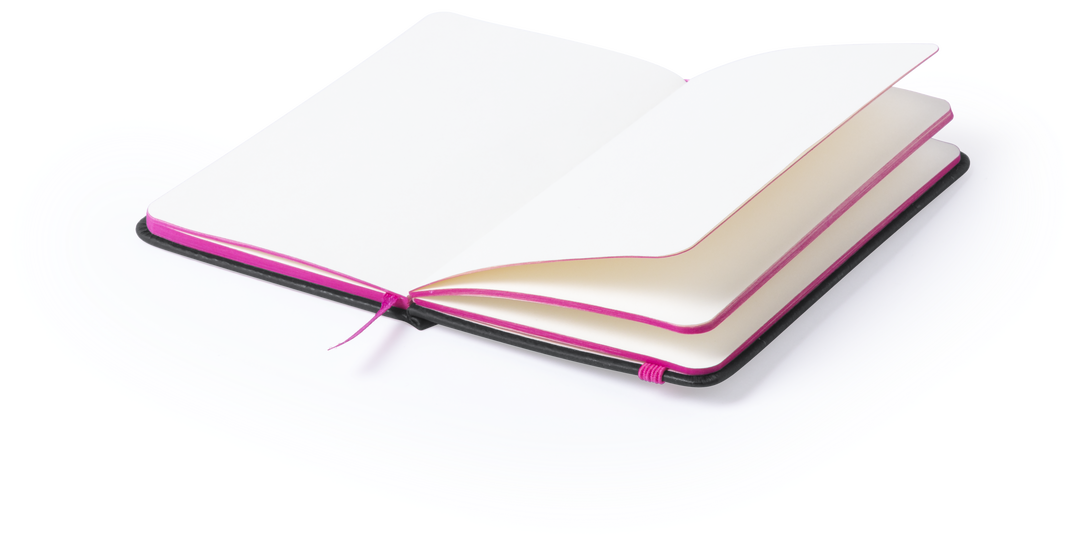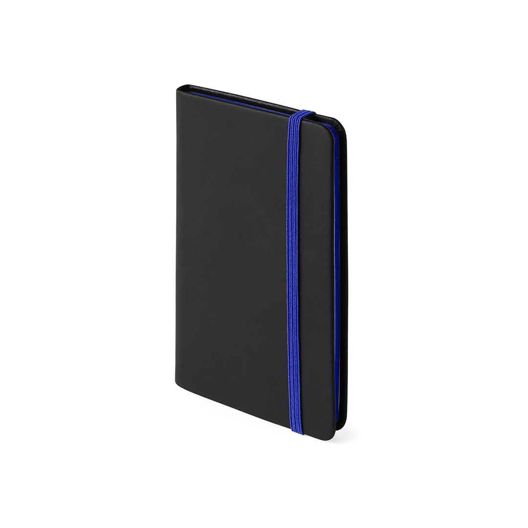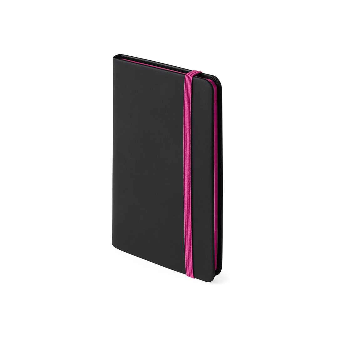 Bloc de notas con tapas de suave tacto acabadas en elegante polipiel negra. De 80 hojas lisas con lomo en divertidos colores, elástico de sujeción y marcapáginas de tela a juego. Portada Rígida. 80 Hojas