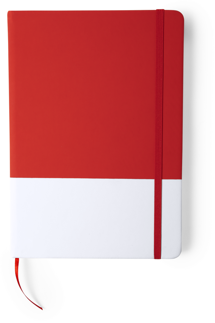 Bloc de notas en desenfadado diseño bicolor, con suaves tapas en polipiel de acabado rígido. 100 hojas con disposición a una raya, con marcapáginas de tela y elástico de cierre a juego. Disponible en variada gama de colores. Portada Rígida. 100 Hojas