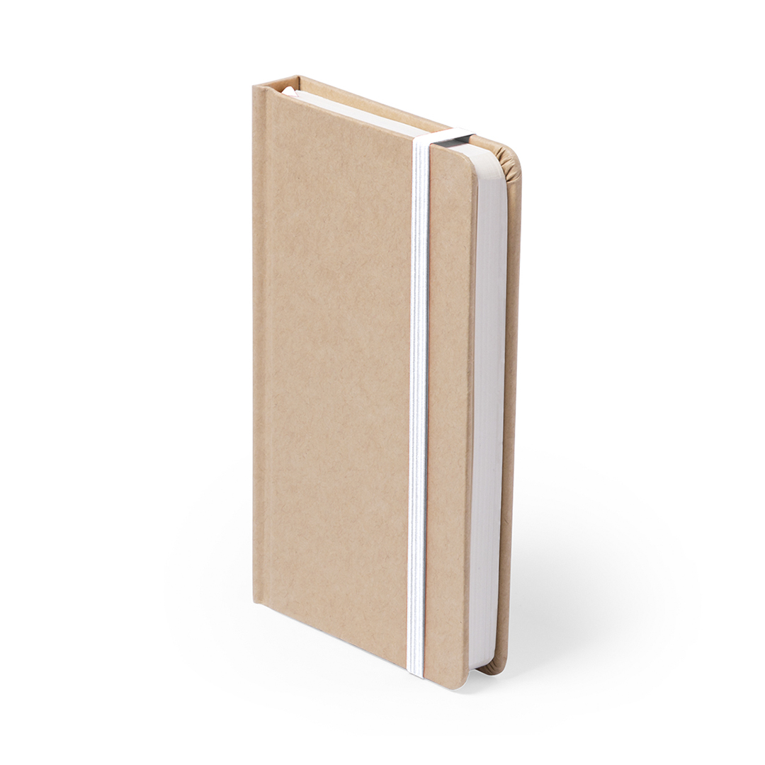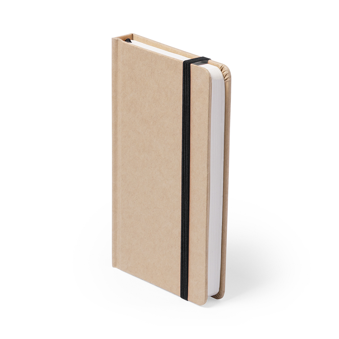 Bloc de notas con tapas de suave tacto acabadas en resistente cartón natural. De 100 hojas lisas, con elástico de sujeción y marcapáginas de tela a juego. Portada Rígida. 100 Hojas