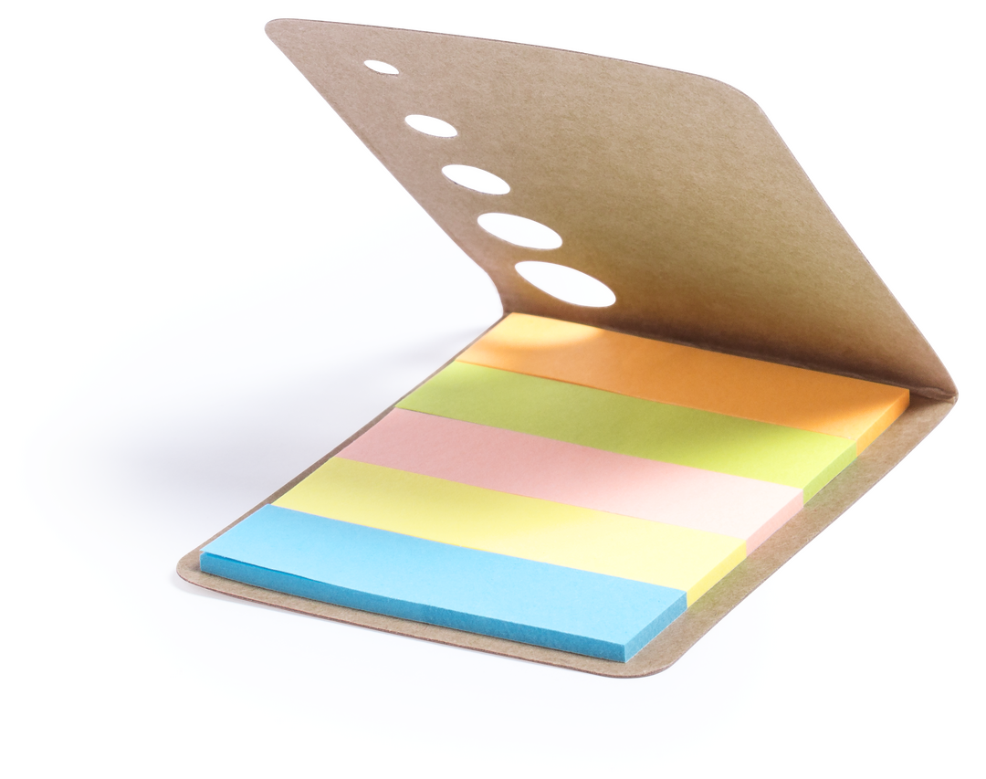 Bloc de notas adhesivas con tapa troquelada de suave tacto acabada en cartón reciclado. Con 100 mini notas adhesivas. 100 Notas Adhesivas 1,5 x 5 cm