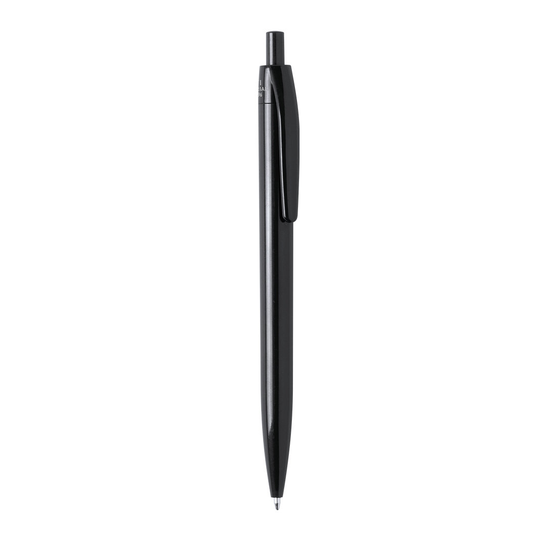 Bolígrafo antibacteriano de mecanismo pulsador. Diseño monocromático, en variada gama de colores con acabado brillante, especialmente diseñado para marcaje en tampografía. Tinta azul. Los productos con tratamientos antibacterianos son capaces de reducir