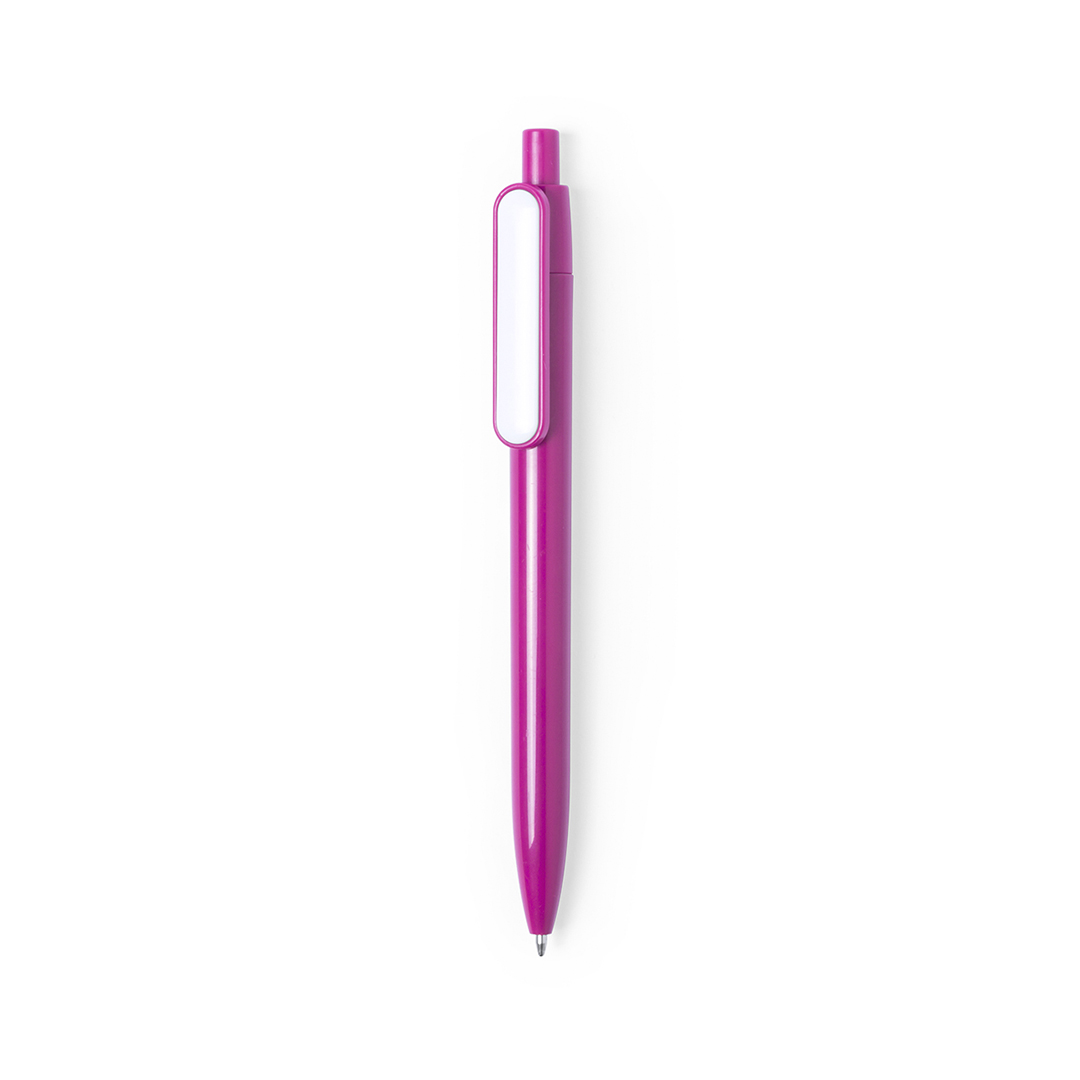 Bolígrafo puntero de mecanismo pulsador con cuerpo de acabado brillo en alegres colores. Con clip gigante diseñado para fácil impresión. Tinta azul.