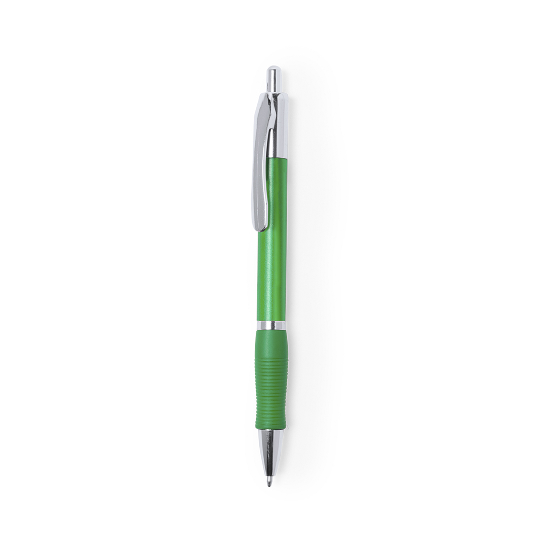 Bolígrafo de mecanismo pulsador de atrevido diseño bicolor y cuerpo de suave acabado en divertidos colores sólidos. Con cómoda empuñadura a juego y accesorios en acabado brillante. Tinta azul.