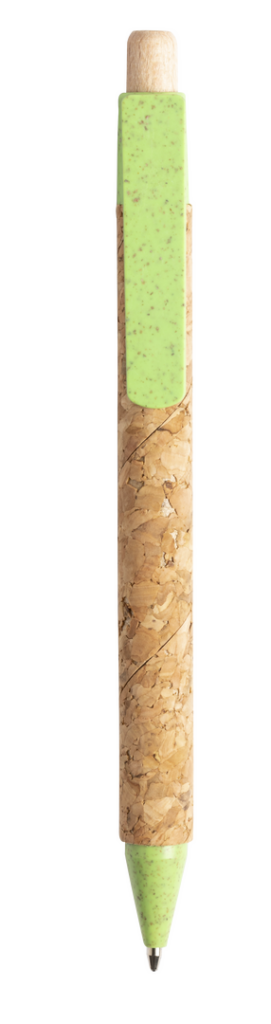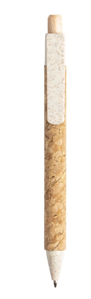 Bolígrafo de línea nature con cuerpo en corcho natural. Clip, punta y pulsador en caña de trigo, para así fomentar la utilización de materias primas naturales y reducir las emisiones de contaminantes. Con clip especialmente diseñado para marcaje en tampog Carga Jumbo