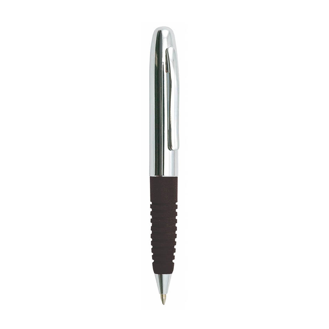 Original bolígrafo de capucha metálica en elegante diseño bicolor. Con cuerpo de suave EVA en variados colores. Anillas y punta en plateado. Tinta azul. Carga Jumbo