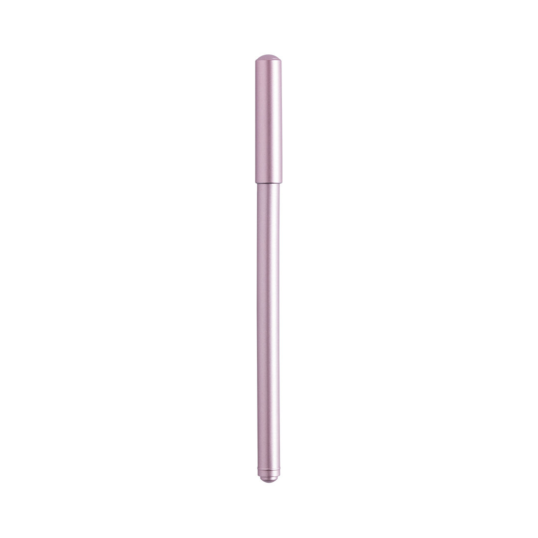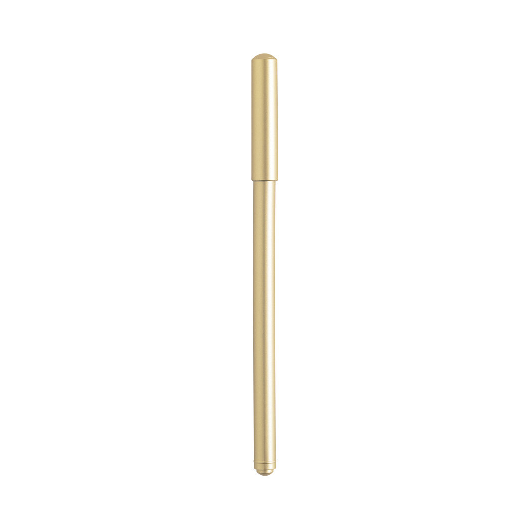 Bolígrafo con capucha en tinta gel y de elegante acabado metalizado frosted. Disponible en colores dorado, oro rosa y plateado. De cartucho jumbo y con tinta azul. Carga Jumbo