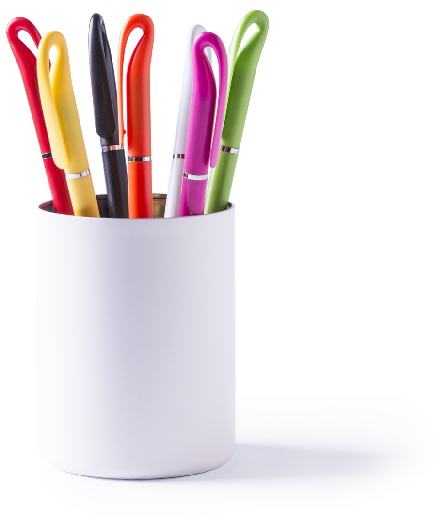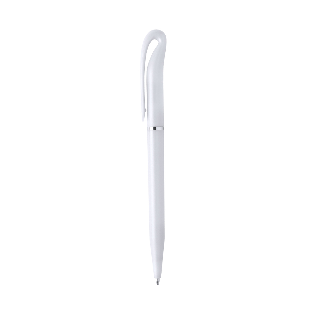 Bolígrafo de mecanismo giratorio con cuerpo de suave acabado en alegres colores sólidos. Con original clip de diseño curvado y anilla central plateada. Tinta azul.