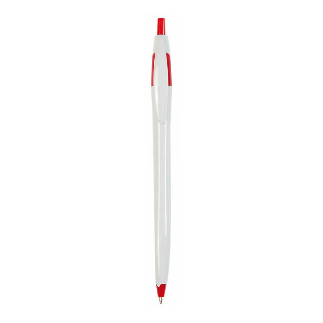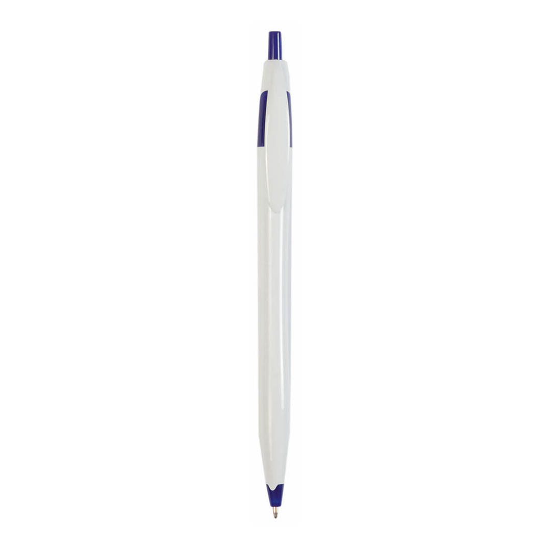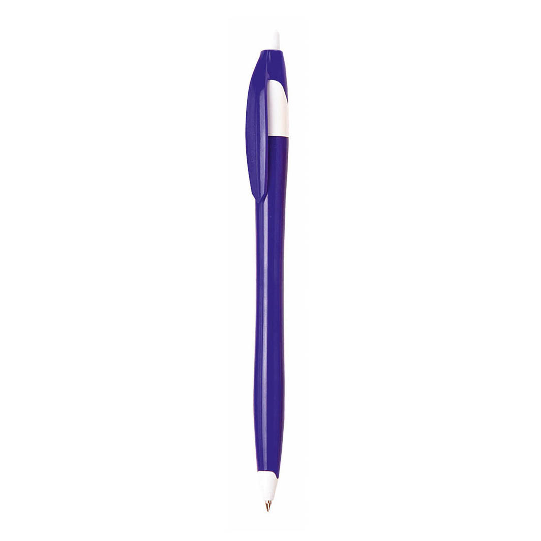 Bolígrafo de mecanismo pulsador de atrevido diseño bicolor y cuerpo curvado, de suave acabado en divertidos colores sólidos. Con clip plano a juego. Tinta azul.
