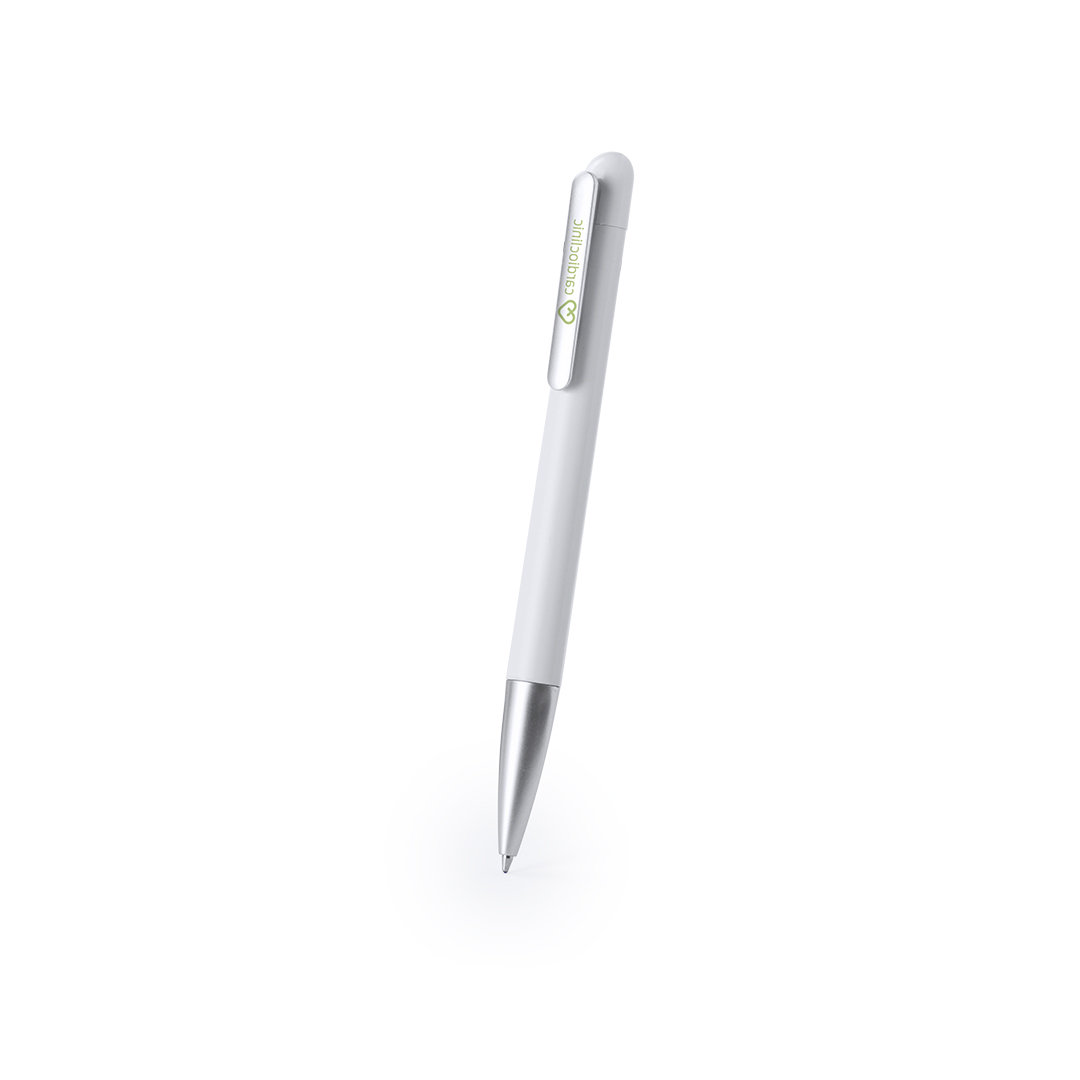 Bolígrafo de mecanismo giratorio y sobrio diseño bicolor con accesorios en color plateado mate y cuerpo de acabado sólido en colores brillantes. Especialmente diseñado para tampografía en clip y en cuerpo. De cartucho jumbo y en tinta azul. Carga Jumbo