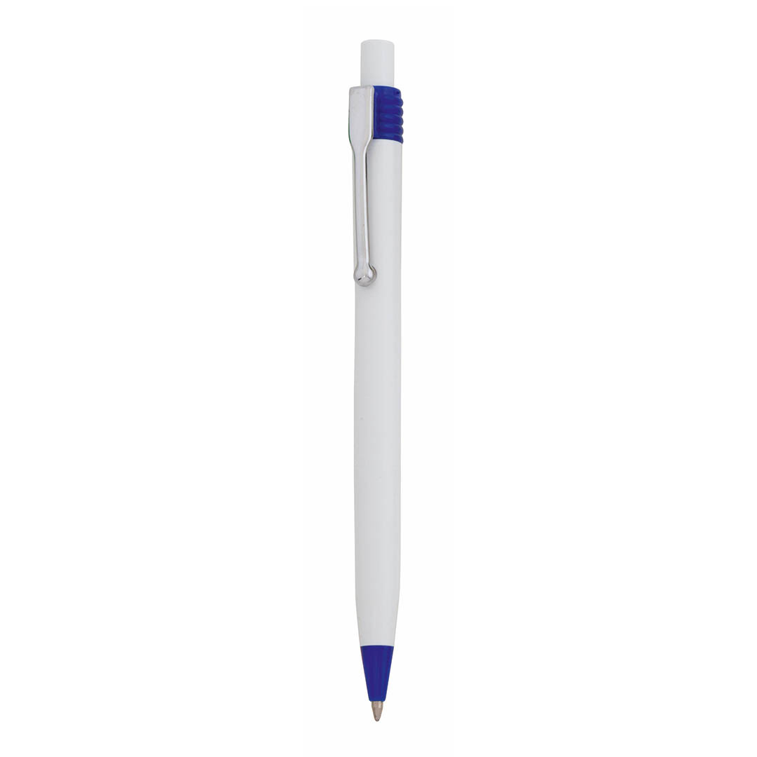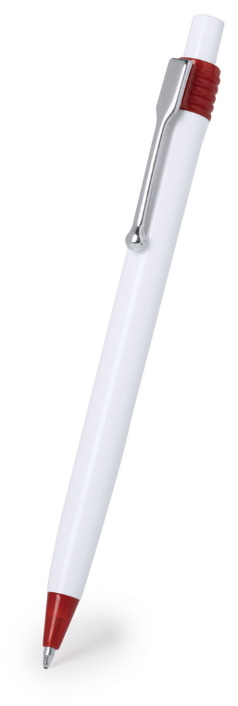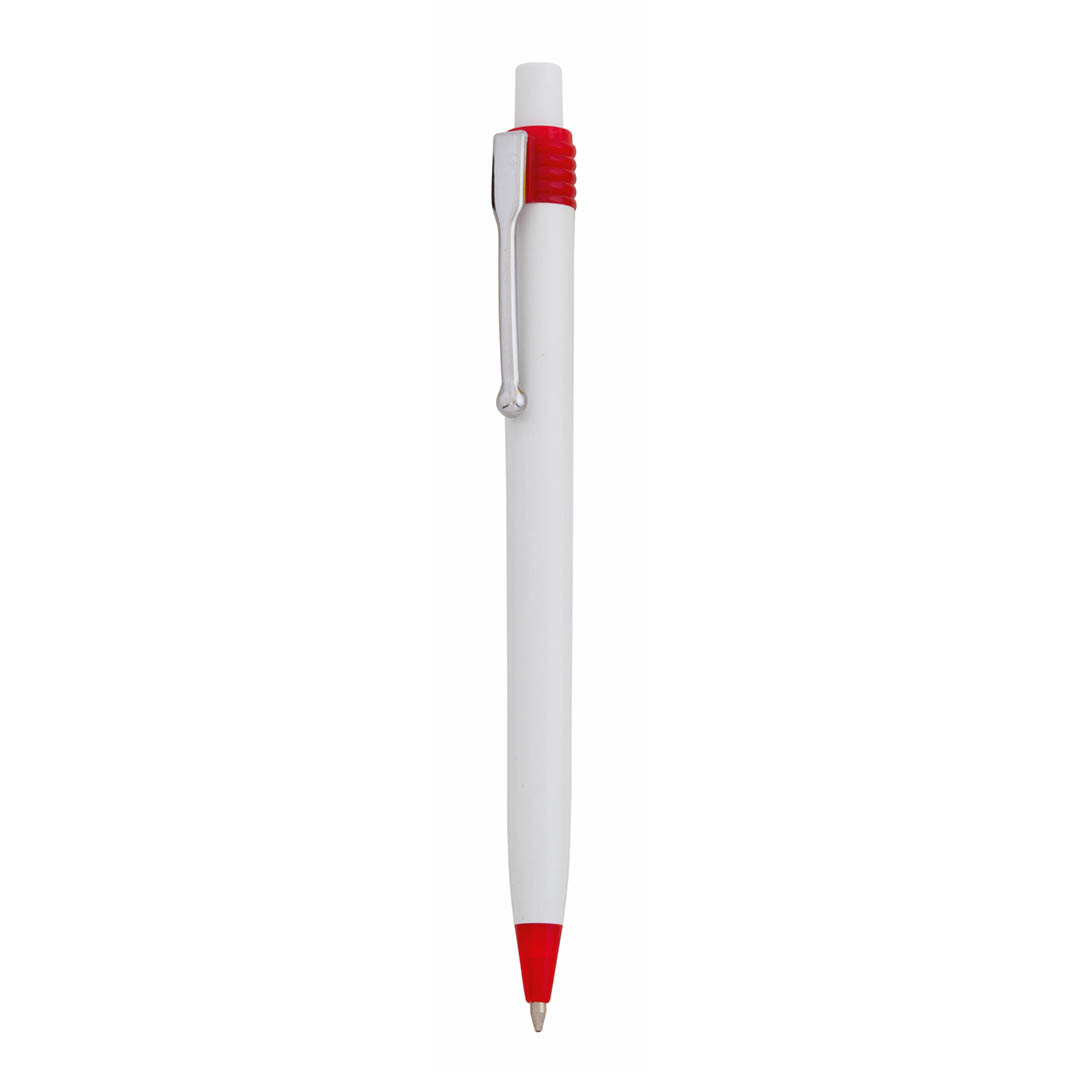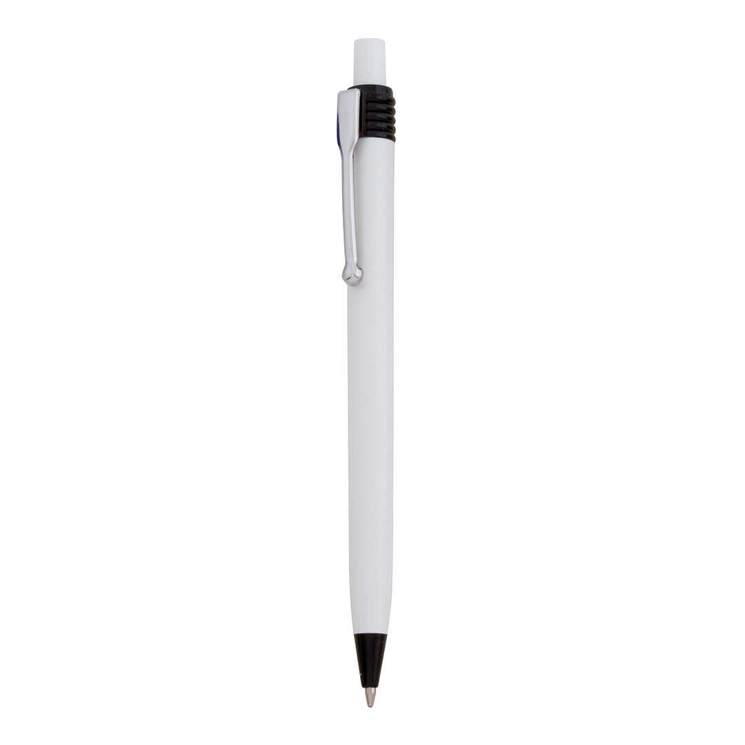Bolígrafo de mecanismo pulsador de atrevido diseño bicolor con accesorios en vivos colores y cuerpo de suave acabado en color blanco. Con clip metálico y tinta azul. De cartucho jumbo. Carga Jumbo