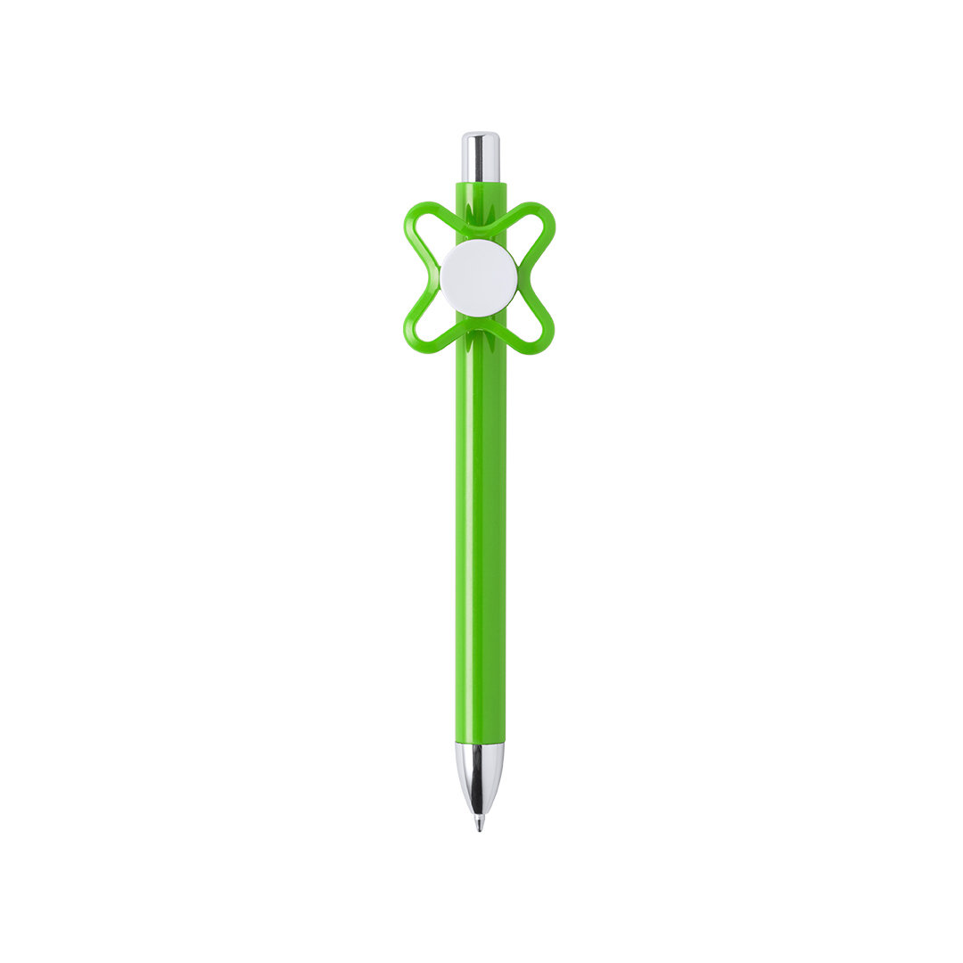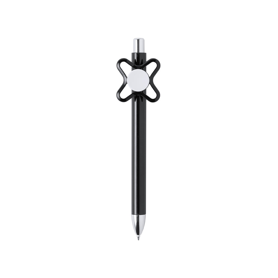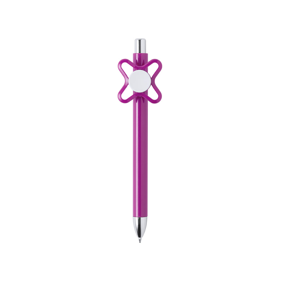 Original bolígrafo spinner antiestrés de mecanismo pulsador y divertido diseño con accesorios en color plateado y cuerpo de acabado sólido en colores brillantes. Especialmente diseñado para tampografía en clip y en cuerpo. De cartucho jumbo y en tinta azu Carga Jumbo