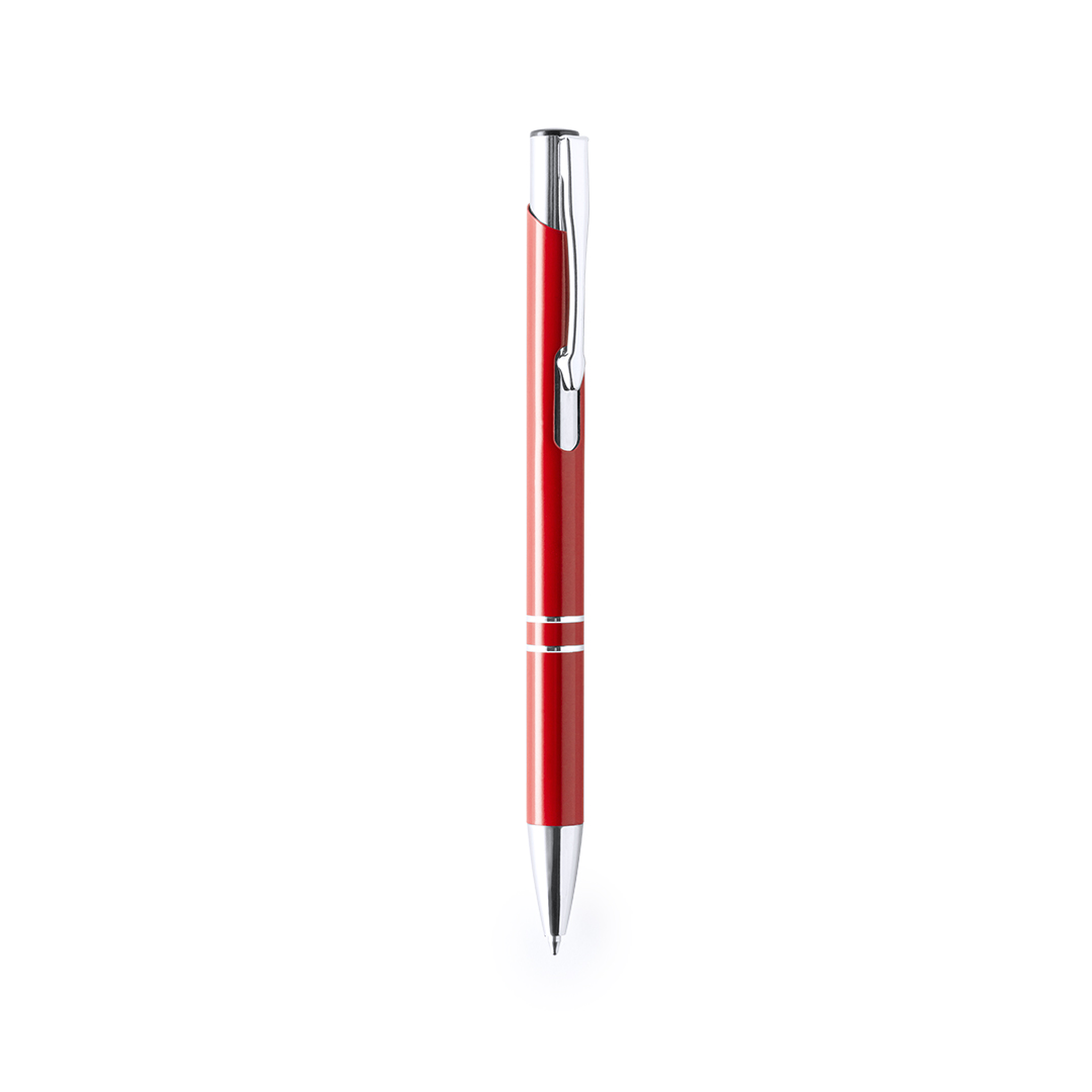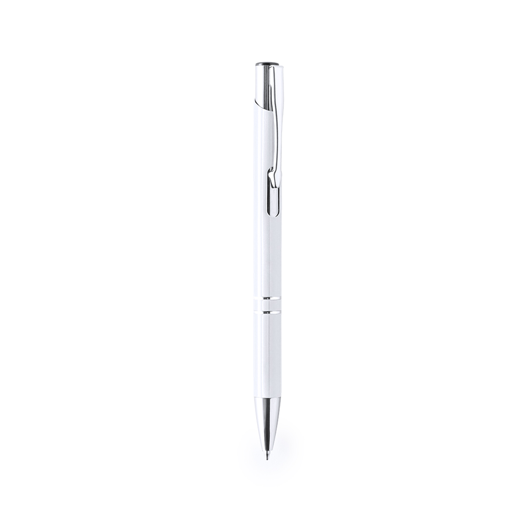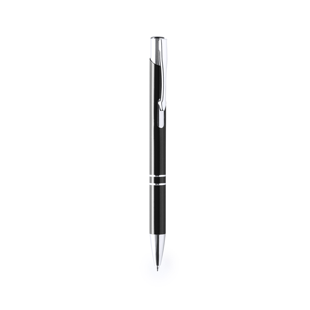 Bolígrafo con cuerpo en aluminio de acabado sólido brillante. Detalles en cromado y original muesca en cuerpo. De mecanismo pulsador, con cartucho jumbo y tinta azul. Carga Jumbo