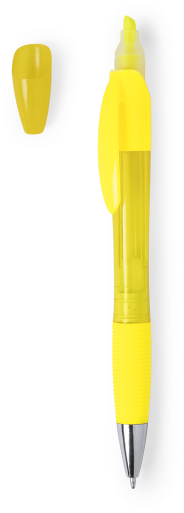 Bolígrafo con marcador de acabado frosted. De mecanismo giratorio, con color de marcador a juego y cómoda empuñadura. Disponible en variada gama de colores y en tinta azul. Marcador Incluido