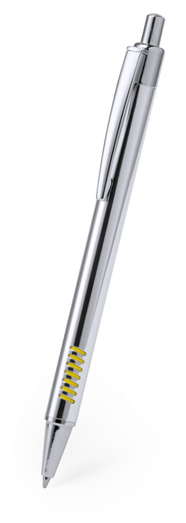 Bolígrafo de acabado cromado con cuerpo en aluminio y original empuñadura en variada gama de colores. De mecanismo pulsador, con cartucho jumbo y tinta azul. Carga Jumbo