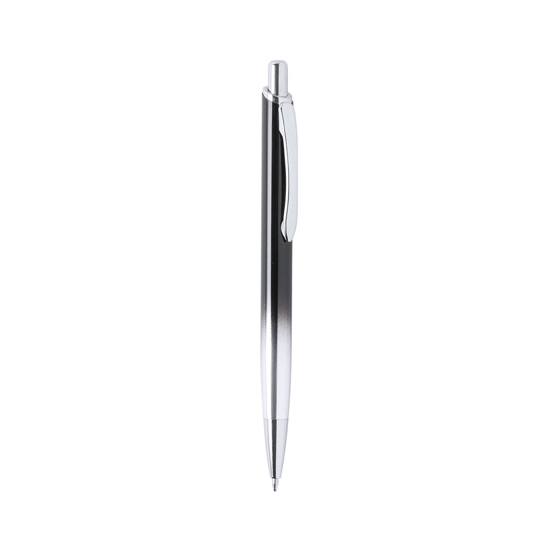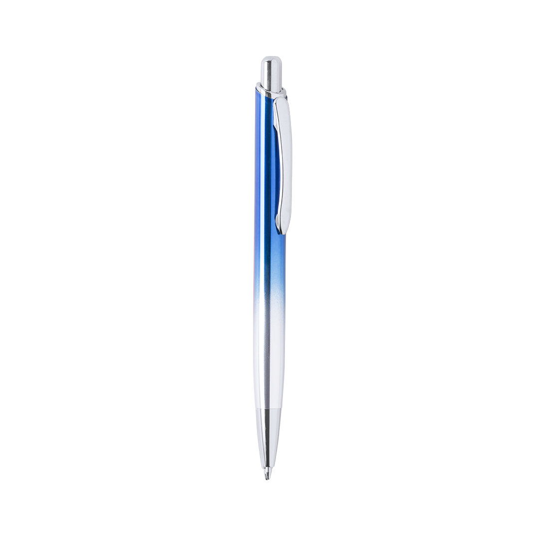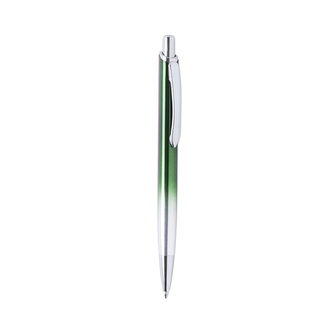 Atrevido bolígrafo de aluminio metalizado con mecanismo pulsador y detalles en color plateado. Cuerpo en combinación de llamativos colores degradados con tonos plateados brillantes. Especialmente diseñado para marcaje en láser y con un recubrimiento exter