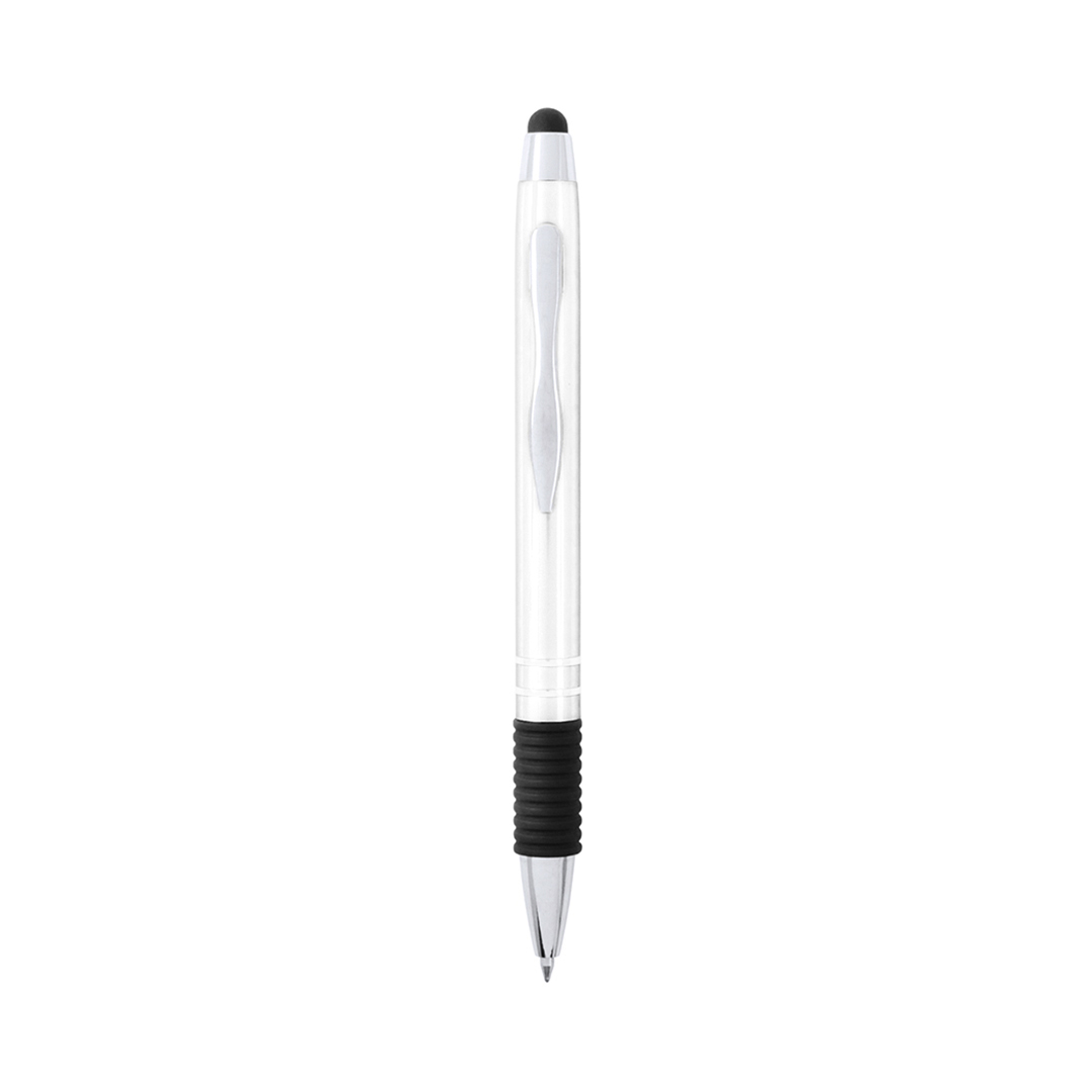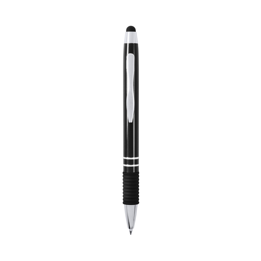 Bolígrafo puntero de mecanismo giratorio con cuerpo en aluminio de suave acabado metalizado en variados colores. Accesorios y anillas en color plateado. Cómoda empuñadura de diseño en fuelle y tinta azul.