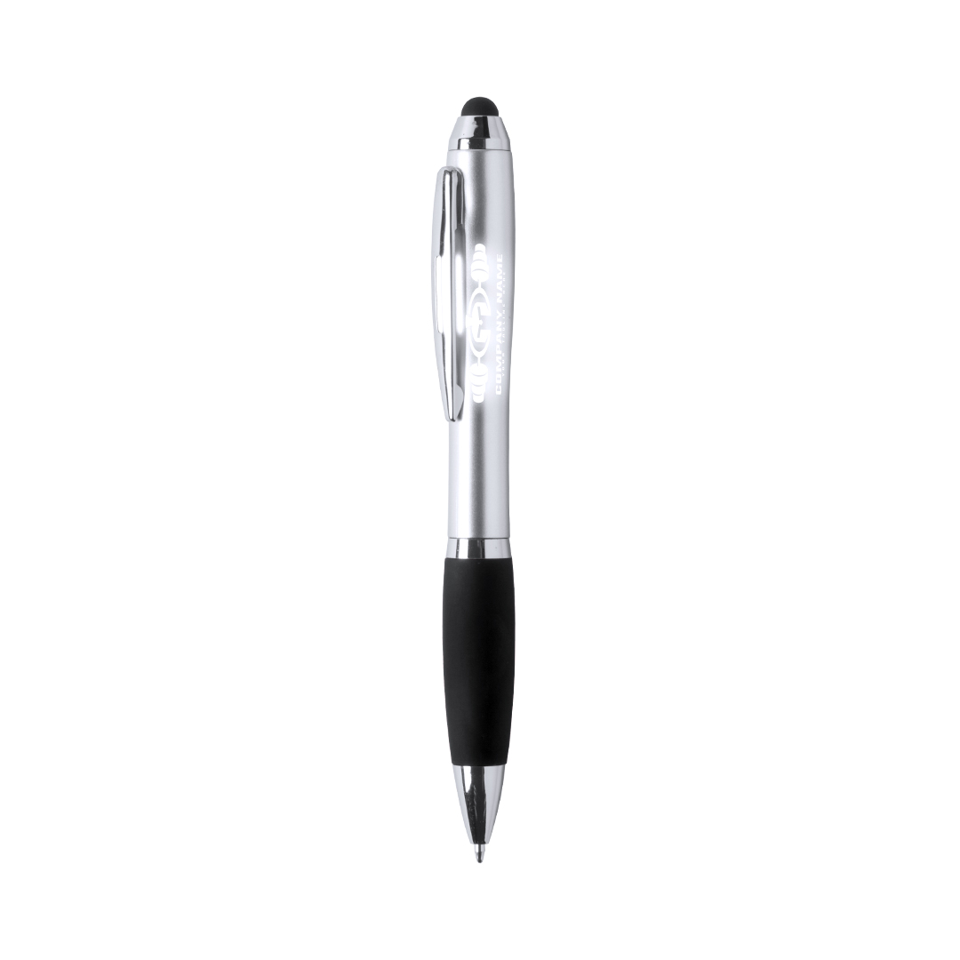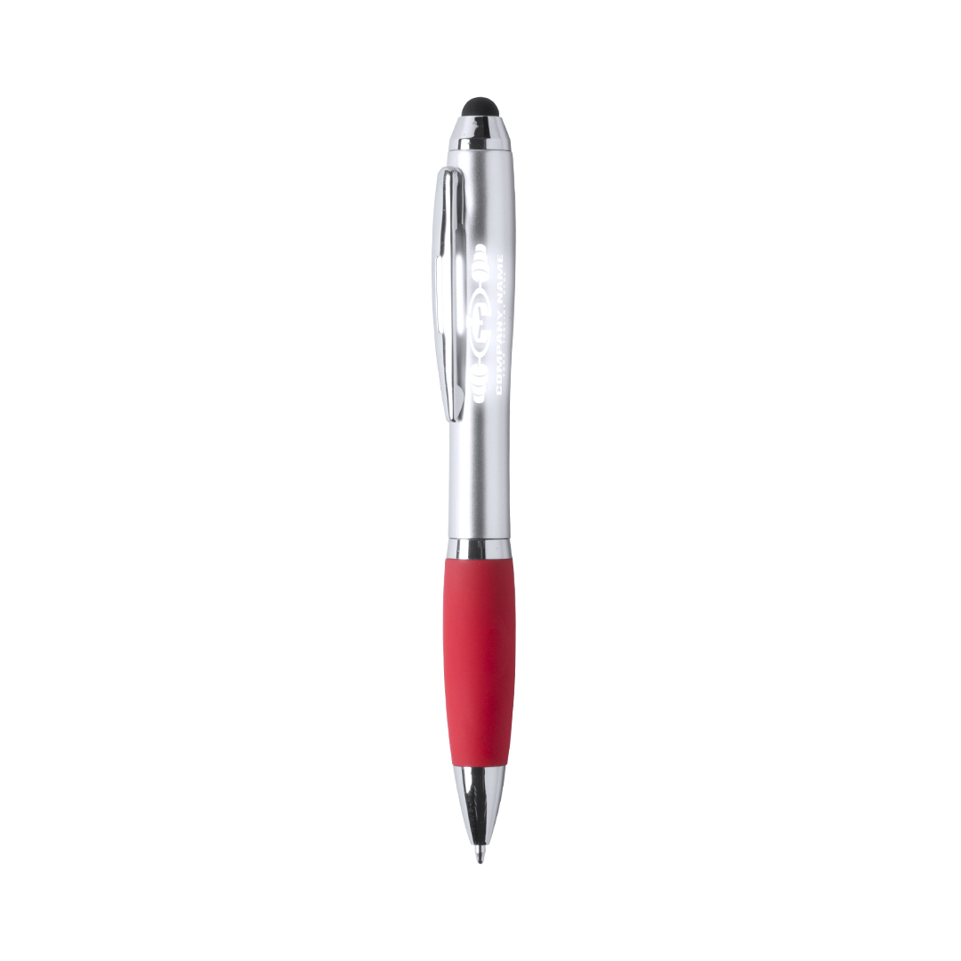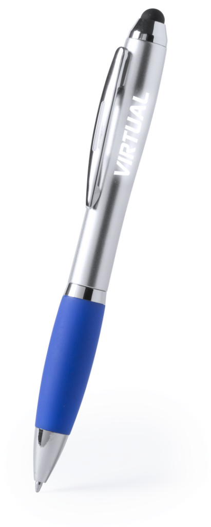 Bolígrafo puntero de mecanismo giratorio con luz led interior y cuerpo especialmente diseñado para marcaje en láser, iluminando así el logotipo. Con suave empuñadura en variada gama de vivos colores y tinta azul. Pilas de botón incluidas. 1 Led. Pilas Botón Incluidas