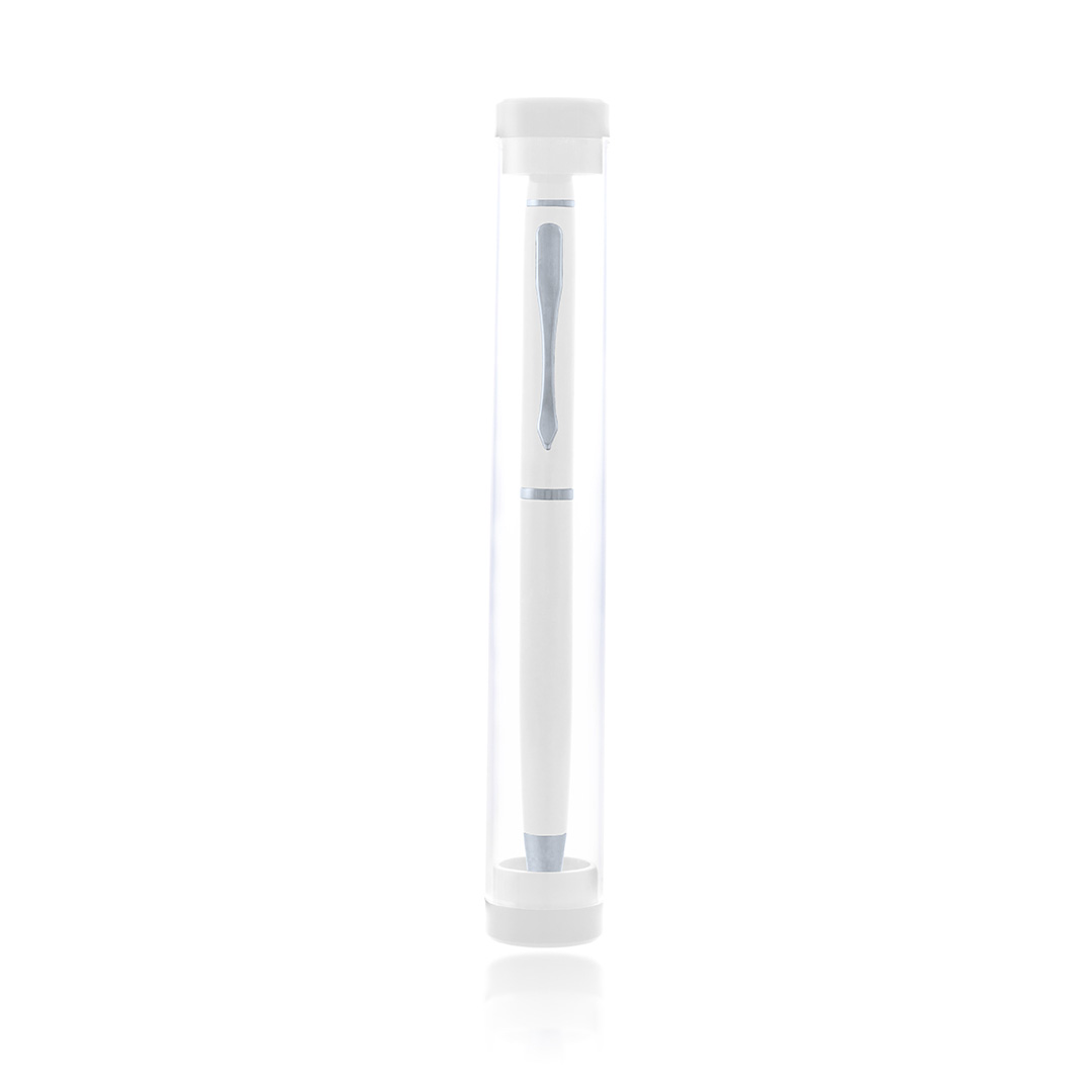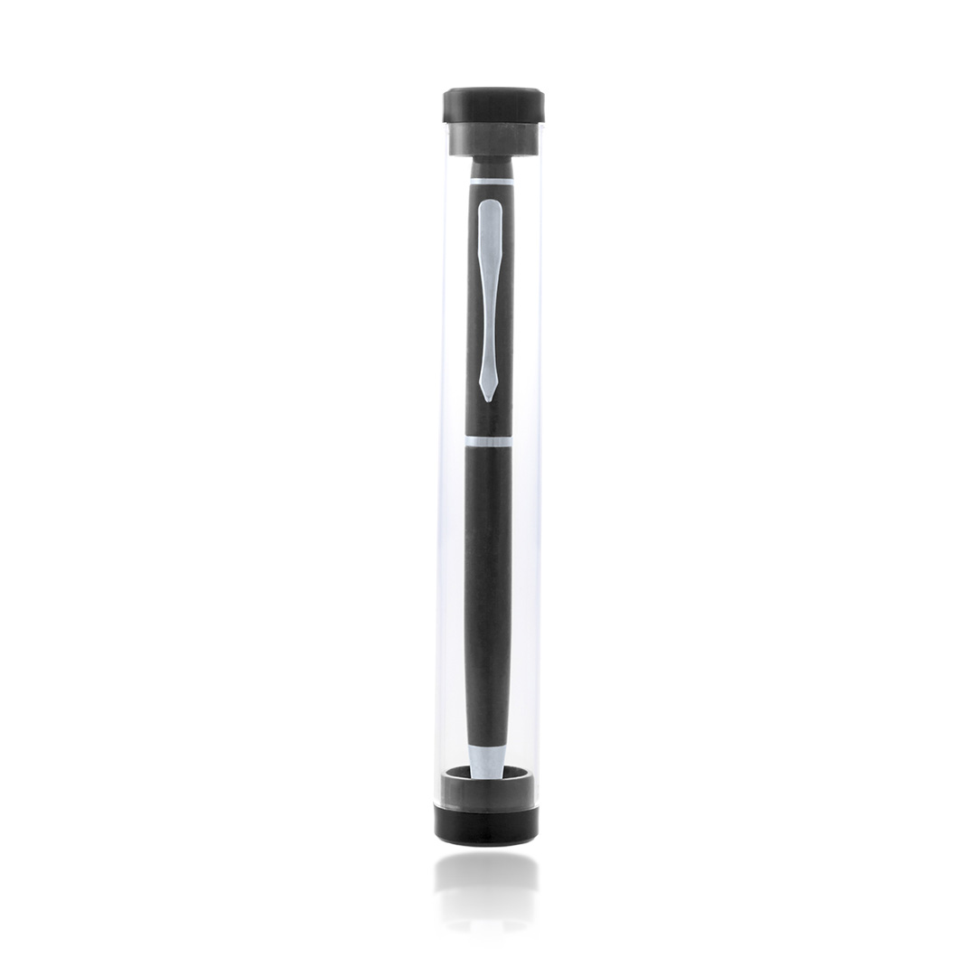 Bolígrafo puntero de mecanismo giratorio con cuerpo en aluminio de suave acabado metalizado en variados colores. Accesorios y anillas en color plateado, con puntero a juego. Presentado en original estuche transparente a juego. Tinta azul.