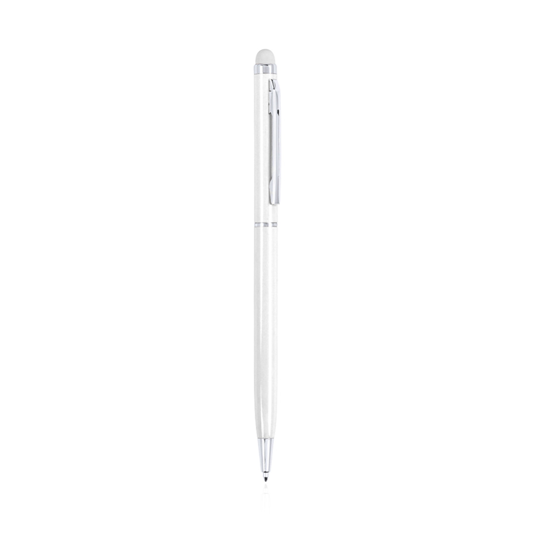 Bolígrafo puntero de mecanismo giratorio con cuerpo ultrafino en aluminio de suave acabado metalizado en variados colores y con puntero a juego. Accesorios y anillas en color plateado. Tinta azul.