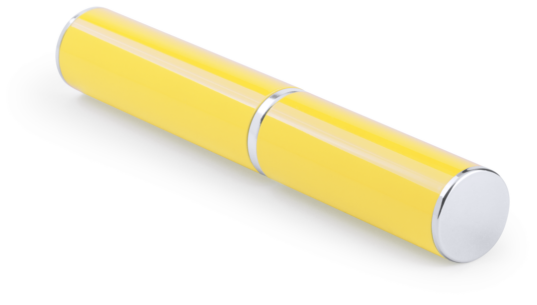 Bolígrafo puntero de mecanismo giratorio con cuerpo metálico de suave acabado en alegres colores. Accesorios y anillas en color plateado. Con puntero a juego y presentado en original estuche metálico a juego. De cartucho jumbo y tinta azul. Carga Jumbo