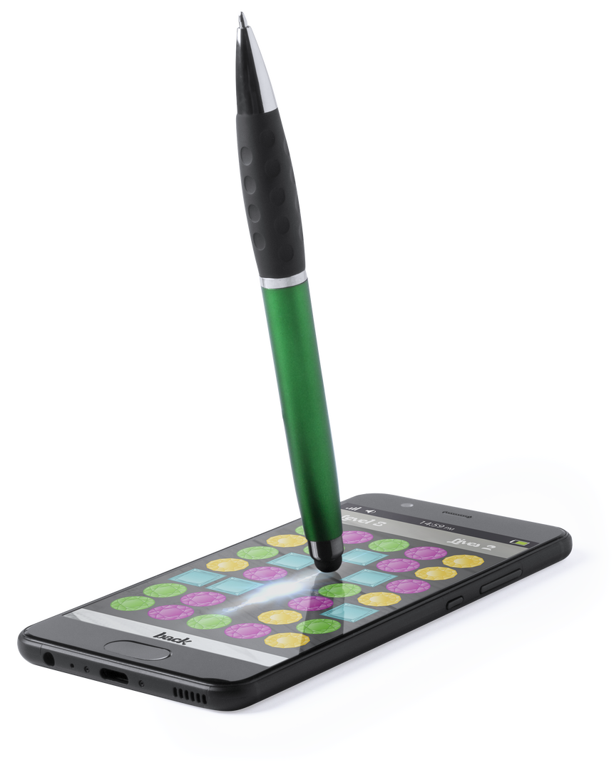 Bolígrafo puntero de mecanismo giratorio con luz led interior y cuerpo especialmente diseñado para marcaje en láser, iluminando así el logotipo. Con suave empuñadura y cuerpo en variada gama de vivos colores. Tinta azul y pilas de botón incluidas. 1 Led. Pilas Botón Incluidas